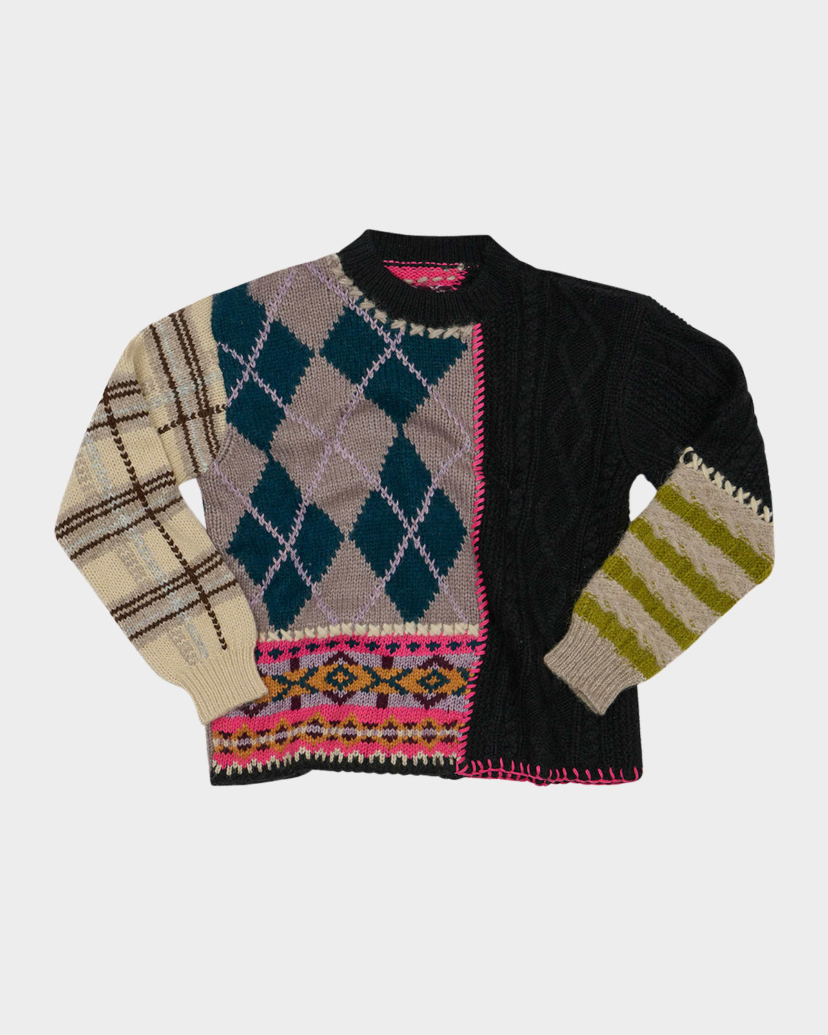 Lingua Franca "Hutton" sweater in an alpaca blend features patchwork patterns and handapplied whipstitching Crew neckline Drop shoulders Long sleeves Oversized fit Pullover style Animal hair/wool/nylon/polyamide Unlined Dry clean Made in Peru