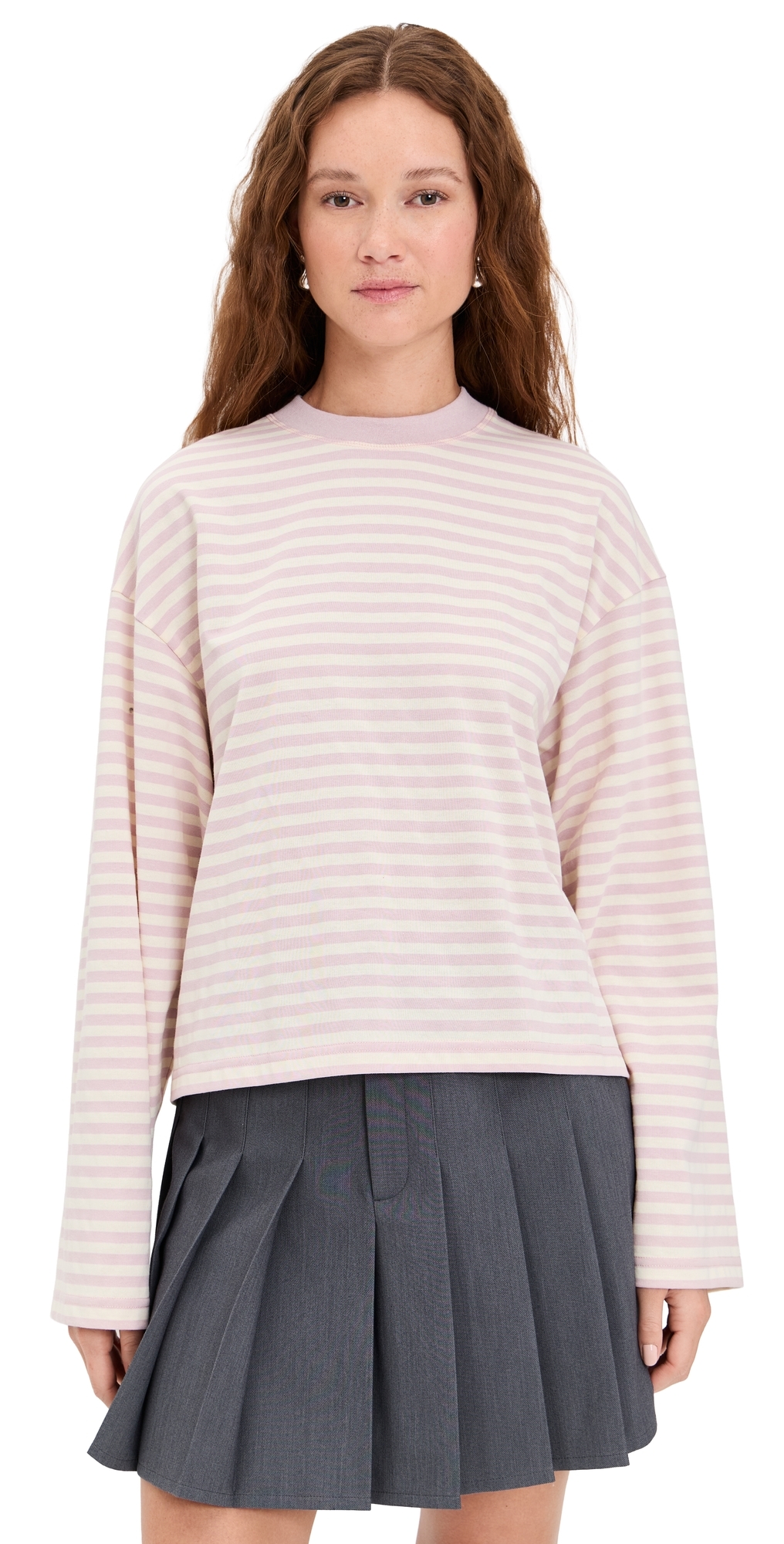 Fabric: Lightweight stretch jersey. Stripe pattern. Crew neck. Long sleeves. Shell: 48% polyester/42% cotton/10% viscose. Hand wash. Imported, China. Measurements: Measurements from size S Length: 19.75in / 50.0cm, from shoulder