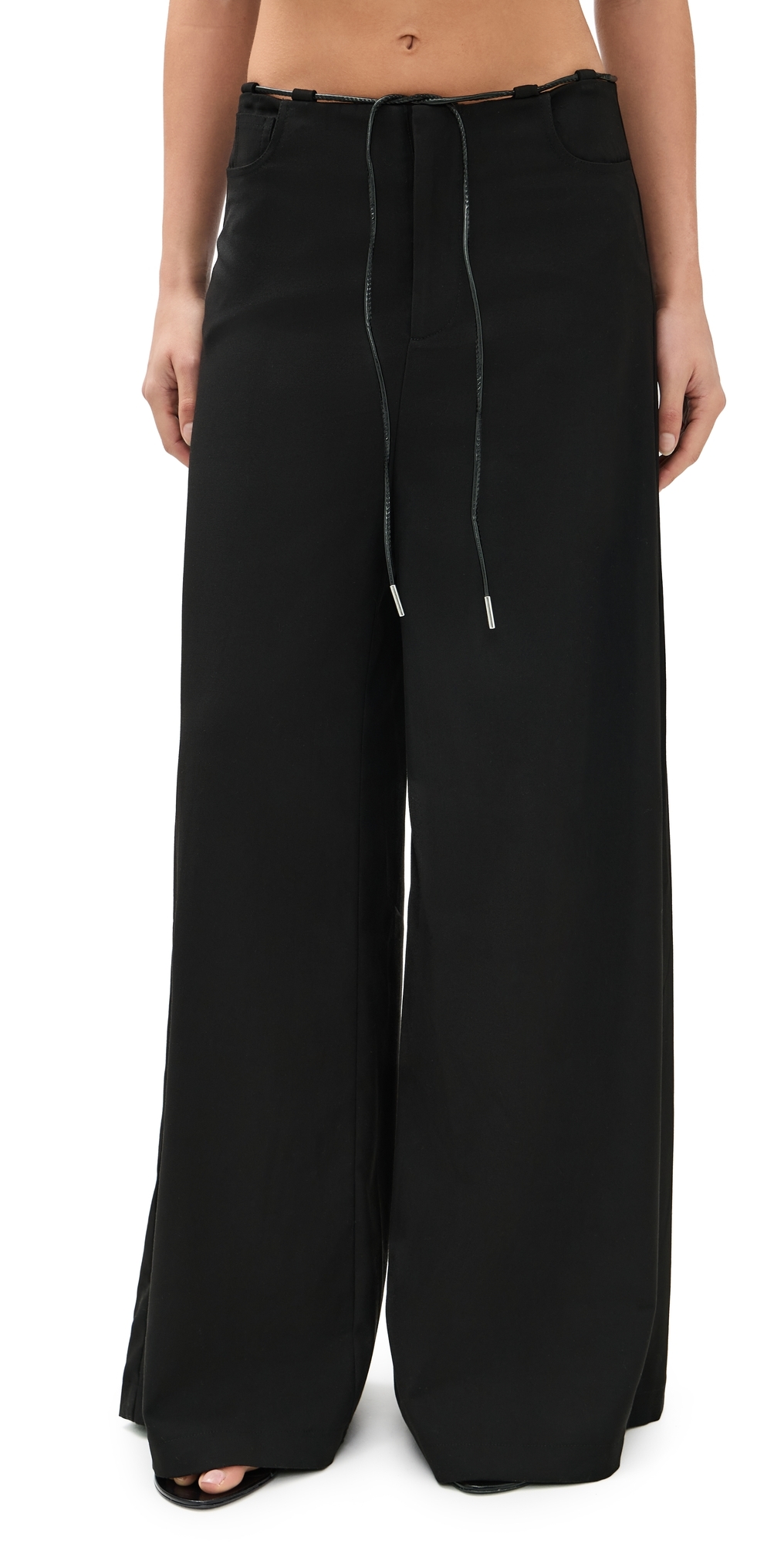 Fabric: Mid-weight, non-stretch twill suiting. Leather tie self-belt. Hidden button closure and zip fly. 5-pocket styling. Shell: 65% polyester/32% viscose/3% elastane. Hand wash. Imported, China. Measurements: Measurements from size XS Rise: 13in / 33cm Inseam: 30in / 76cm Leg opening: 31in / 79cm