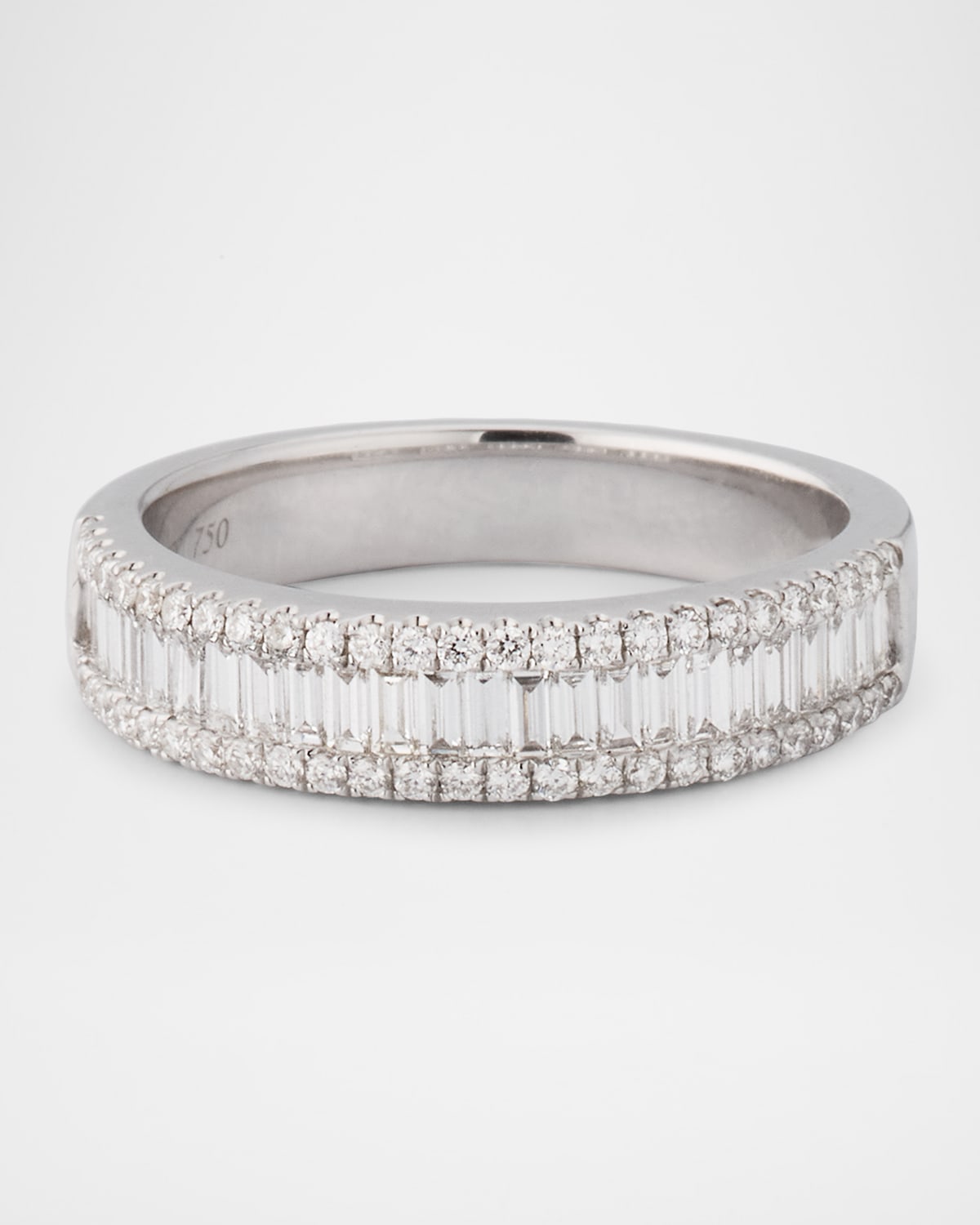 Diamond Game 18K Rose Gold Petite Channel Baguette and Round Triple Row Band Ring, Size 6