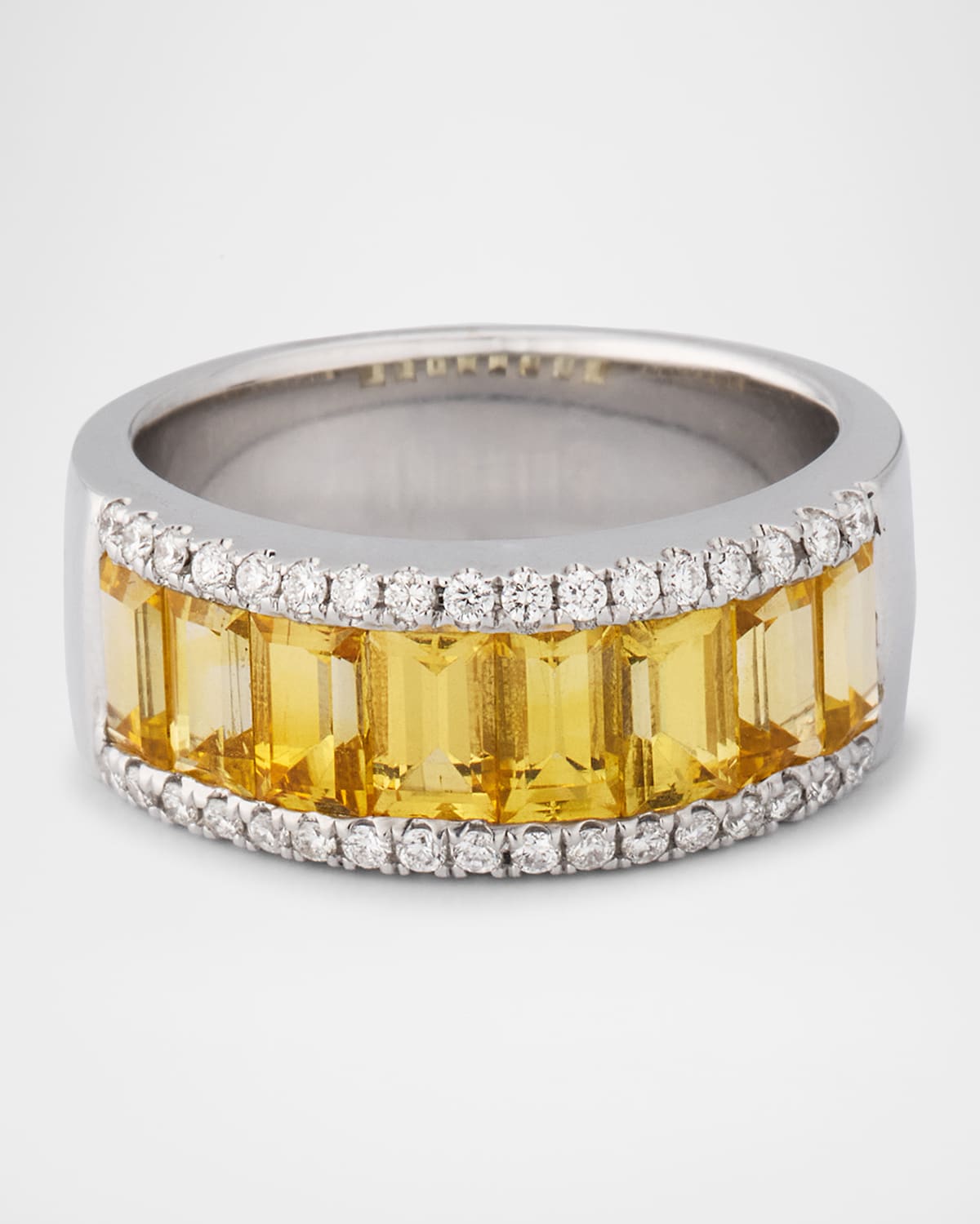 Lisa Nik band ring from the Rainbow Collection Approx. ring size 6 Other sizes can be special ordered 18karat white gold Eight yellow sapphires; 3.06 total carat weight 34 round white diamonds; 0.26 total carat weight Imported