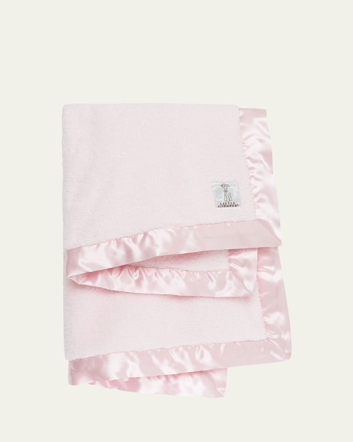 Little Giraffe "Chenille" solid plush baby blanket. Satin border. Approx. 29" x 35". Polymicrofiber. Border, rayon/acetate. Made in USA of imported material.