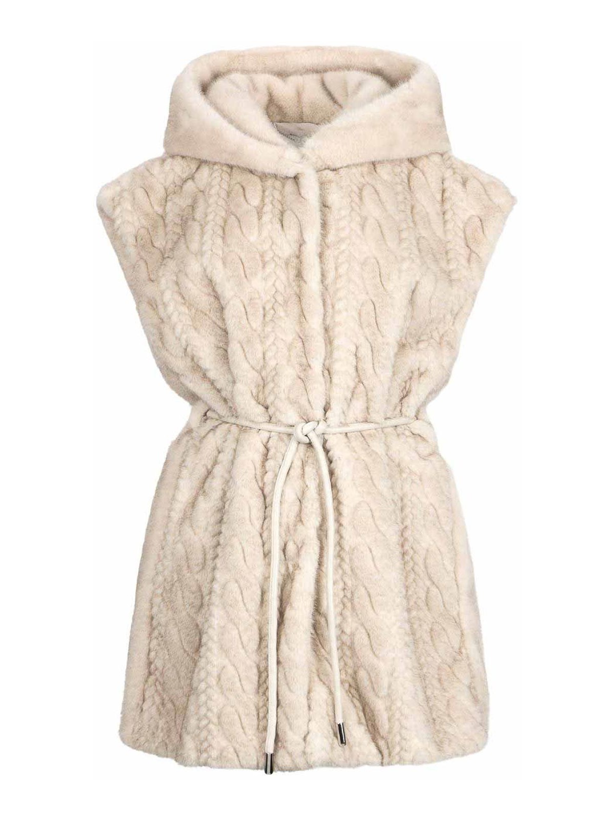 Gilet en similicuir ivoire à capuche de la marque Liu Jo