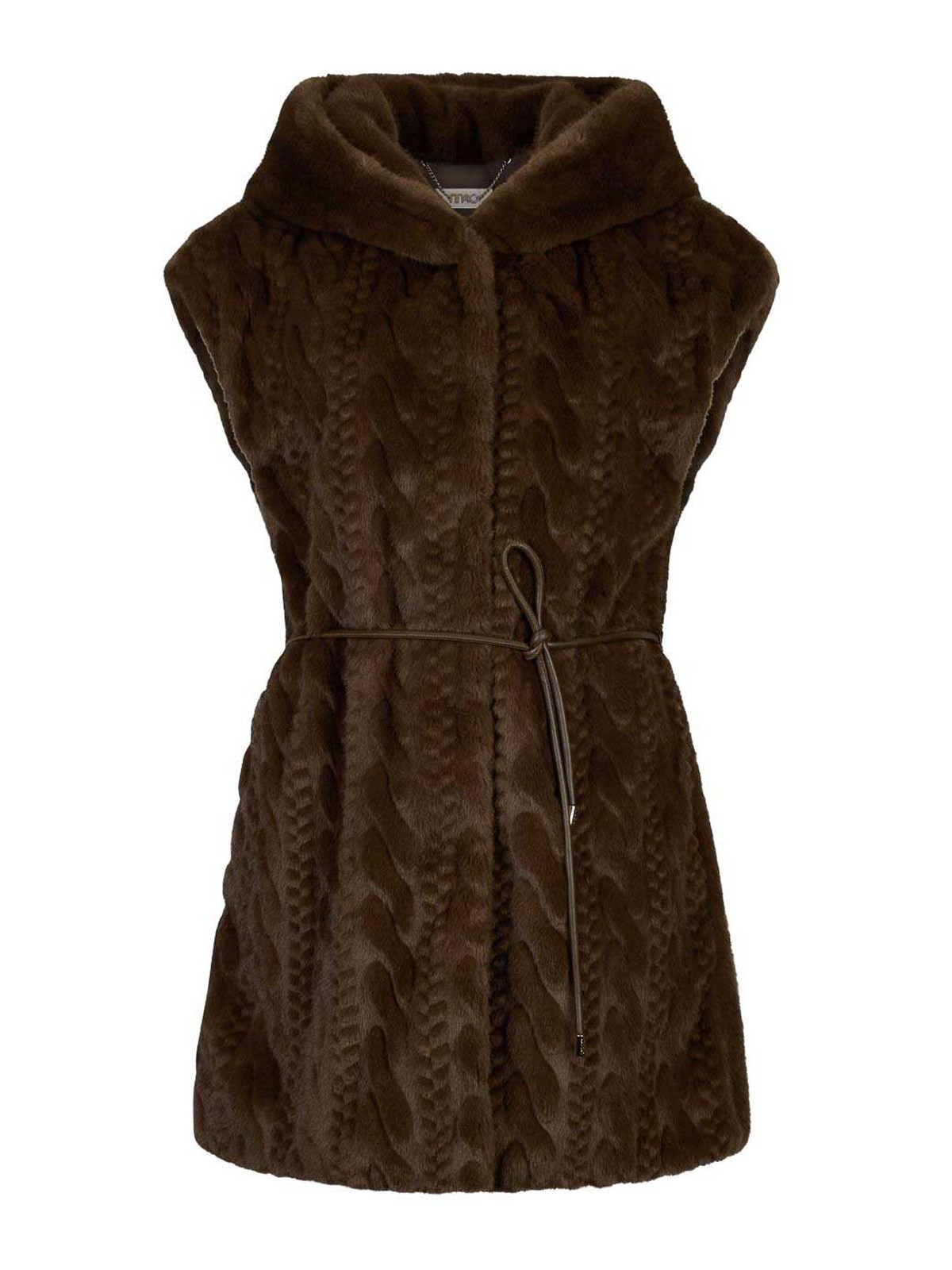 Gilet en similicuir marron à capuche de la marque Liu Jo
