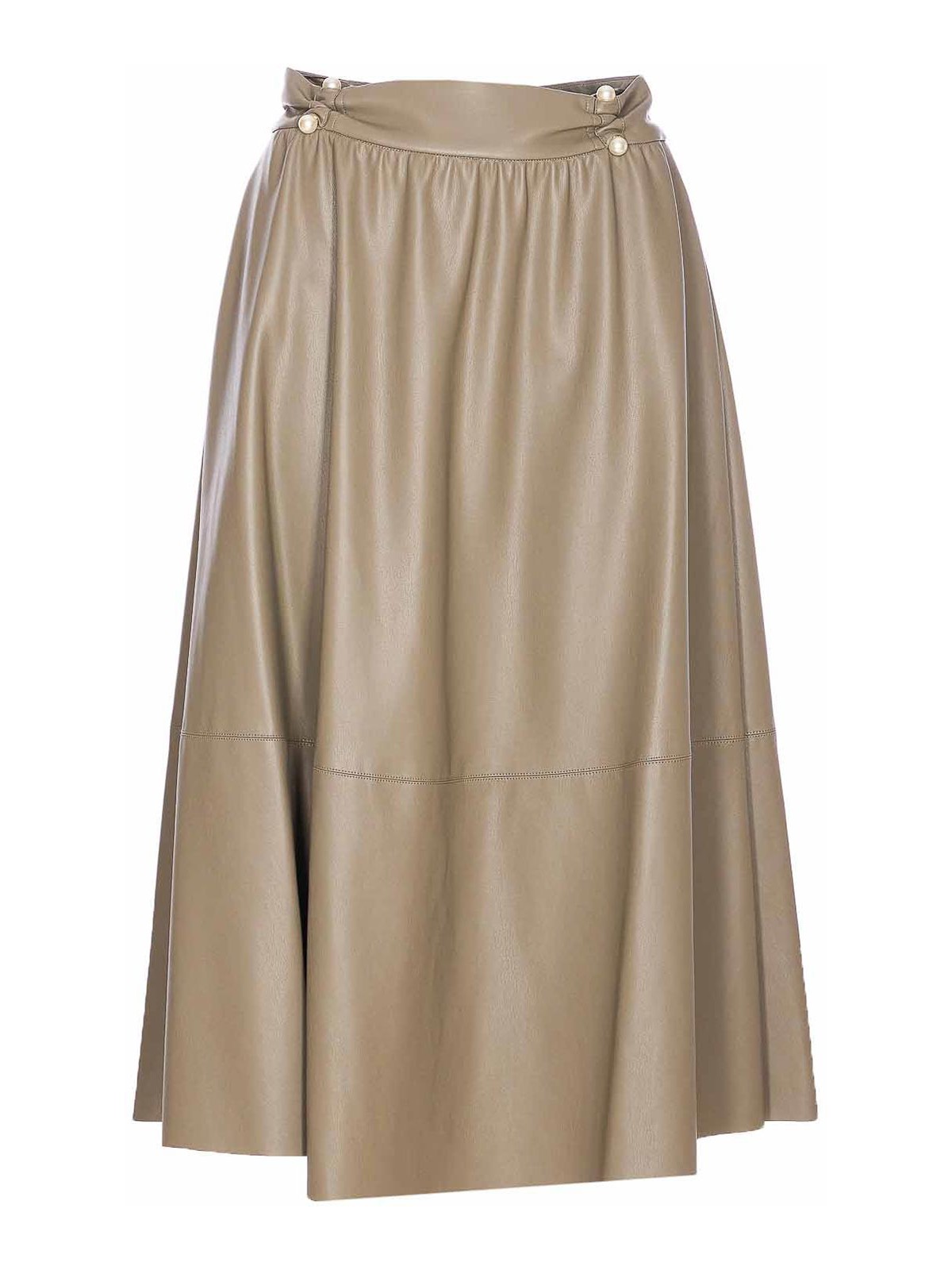 Jupe verte Liu Jo, fermeture zippée et crochet au dos, taille haute, détail perlé sur le devant, modèle long