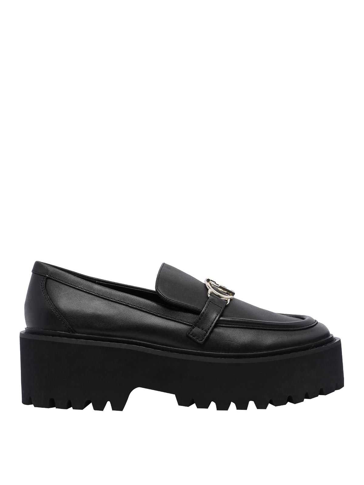 Mocassins Liu Jo noirs à bout rond, modèle à bout rond, logo doré sur le devant