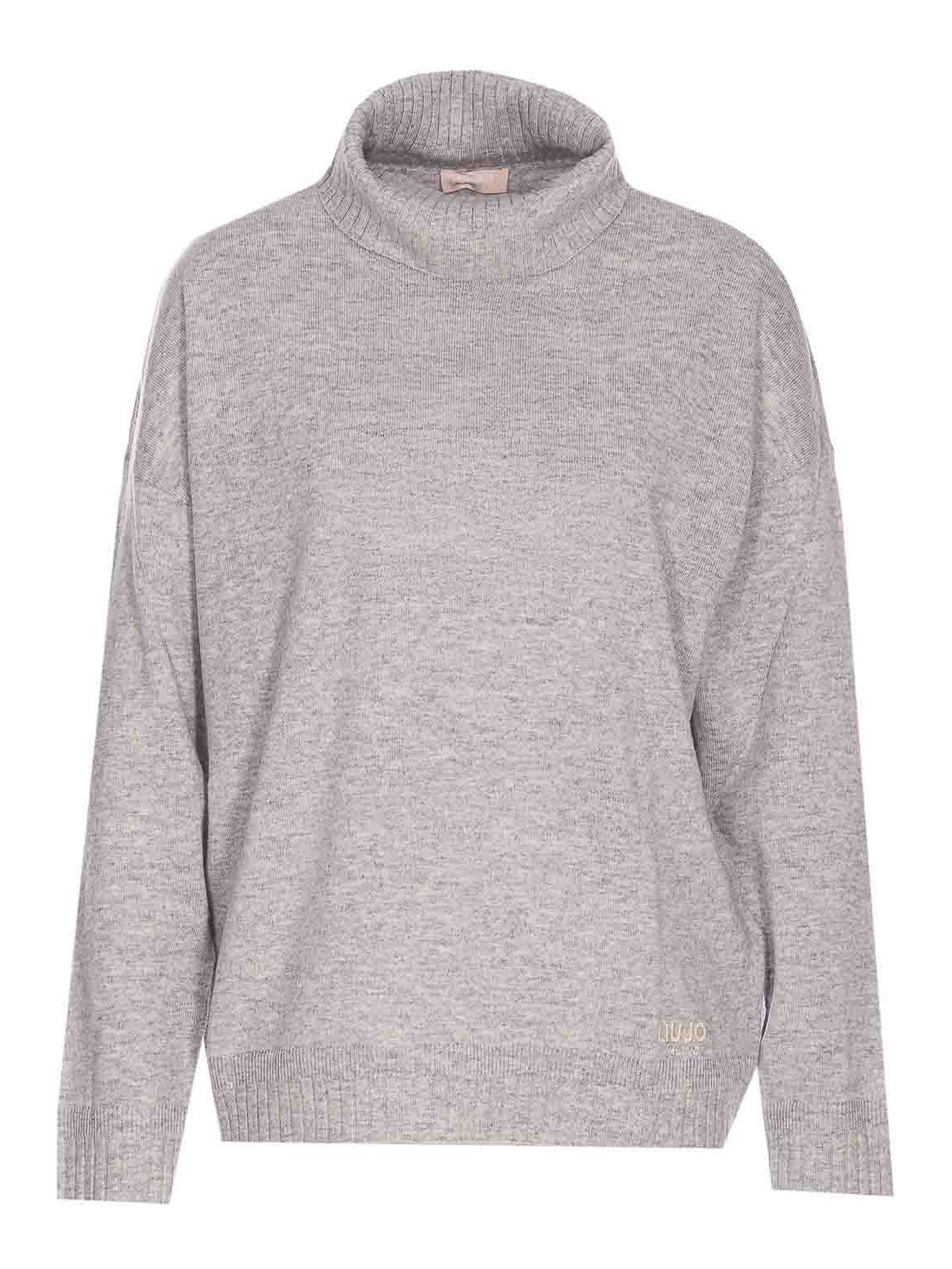 Pull gris Liu Jo à col roulé avec logo frontal Nom de la couleur du créateur: gris
