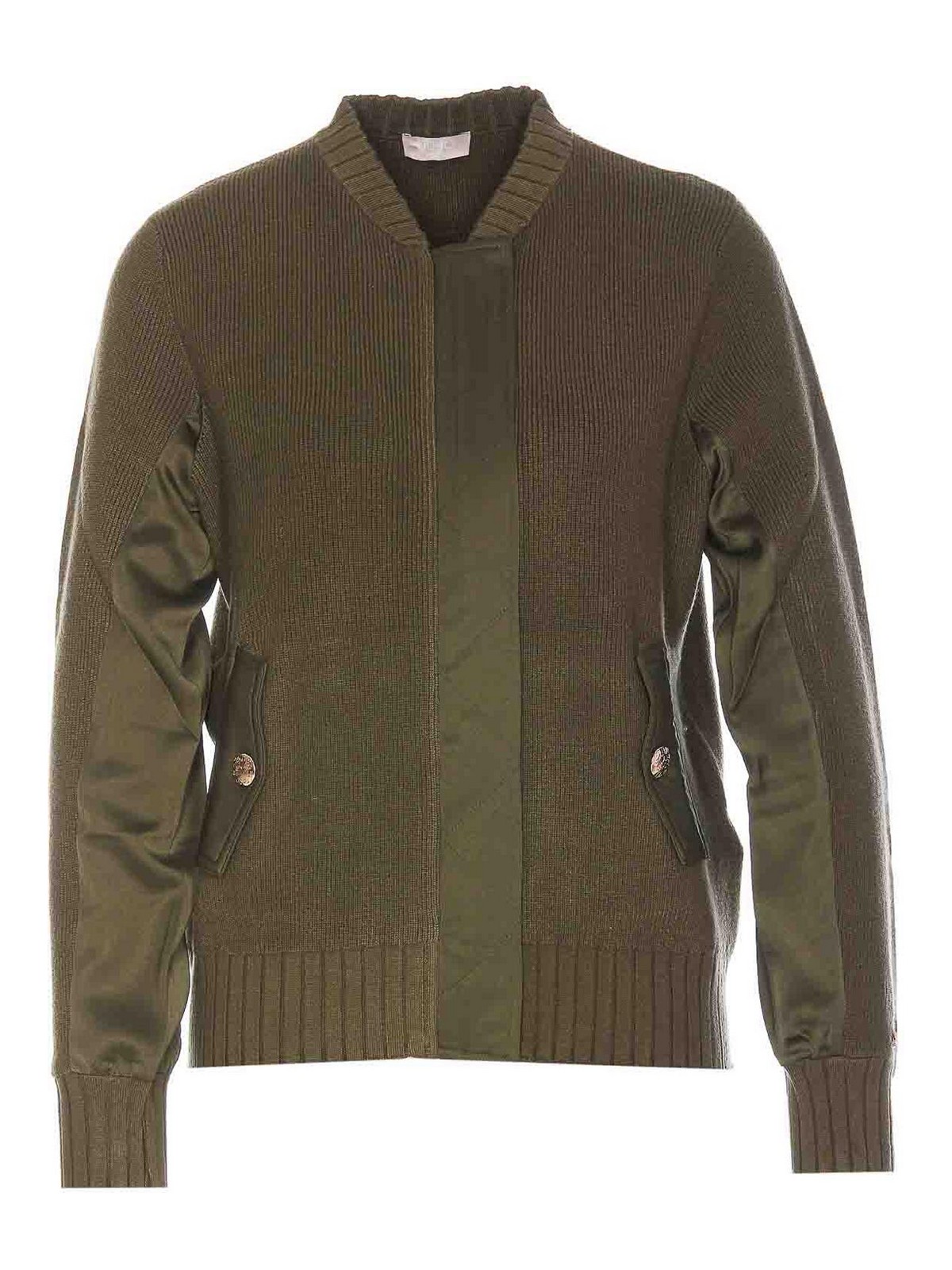 Pull vert olive Liu Jo avec fermeture éclair, col rond, manches longues et poches avec logo boutonné sur les manches