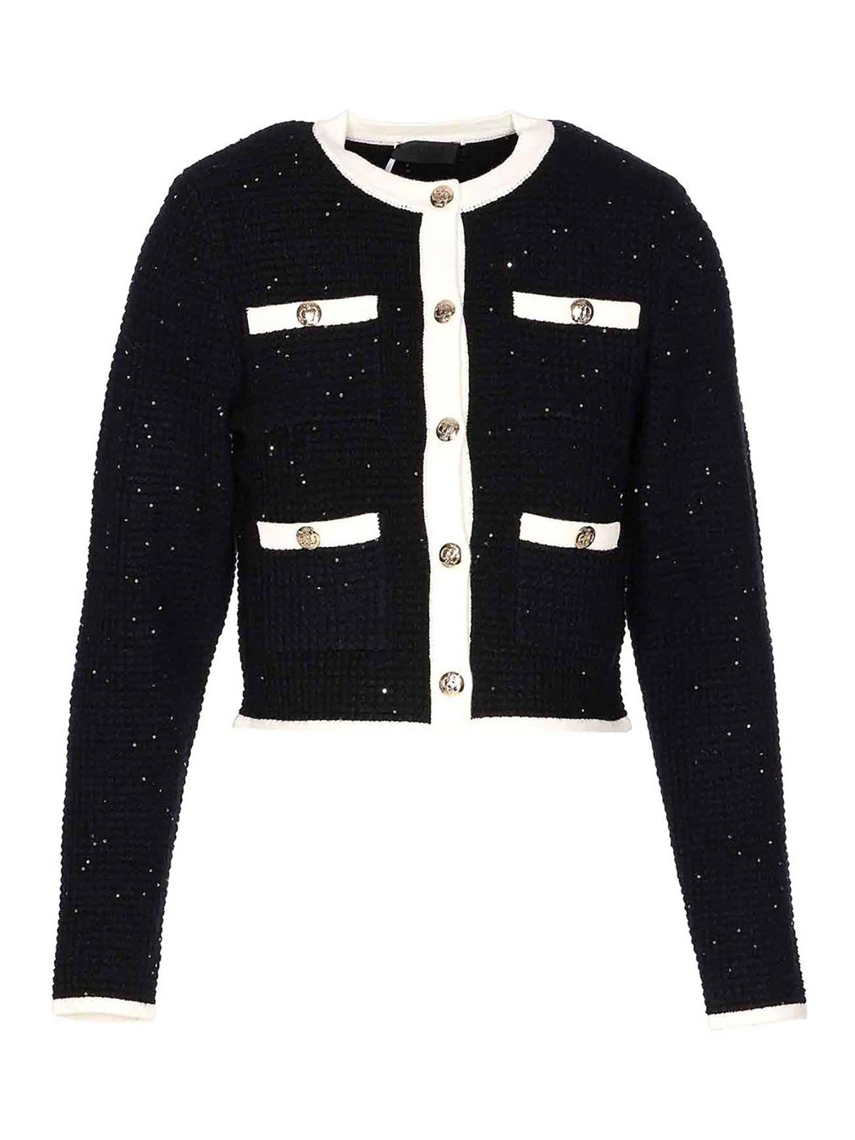 Veste noire Liu Jo, col rond, épaules renforcées, boutons, mini-paillettes, manches longues, manches longues, nom de la couleur du créateur: noir