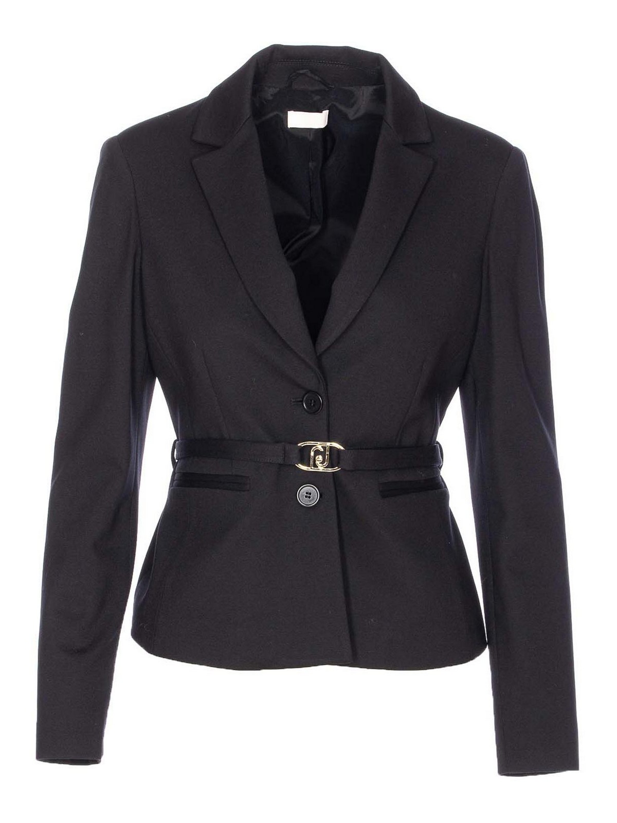 Veste noire Liu Jo avec boutons frontaux, encolure en V, manches longues, ceinture à la taille avec logo à plaque Nom de la couleur du créateur: noir