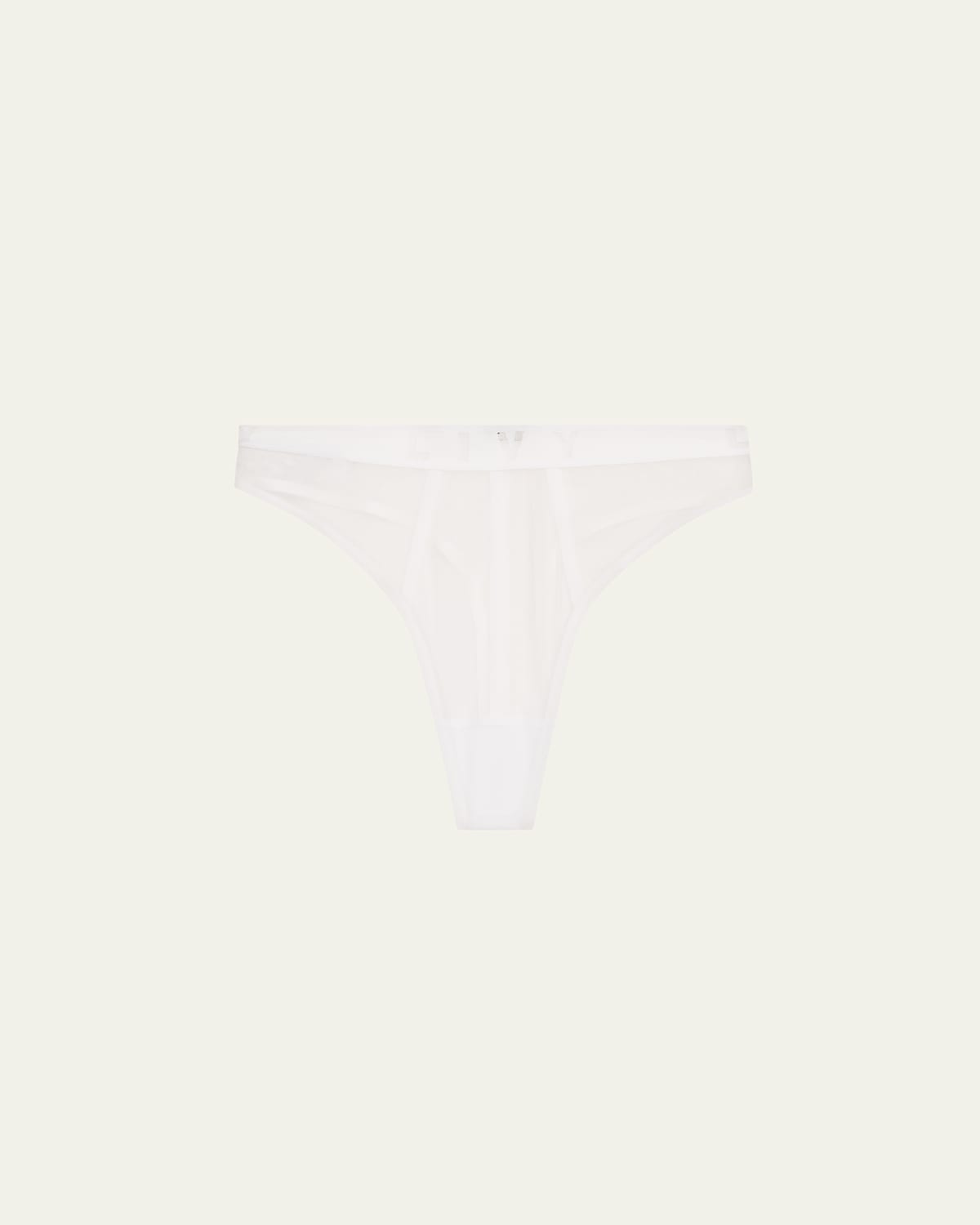 Livy "Blue Monday" tanga made from stretch tulle with a modern and bold graphic design Logoprint elasticized waistband Highrise sits high on the hips Highcut legs Minimal seat coverage Nylon/polyamide/elastane Imported