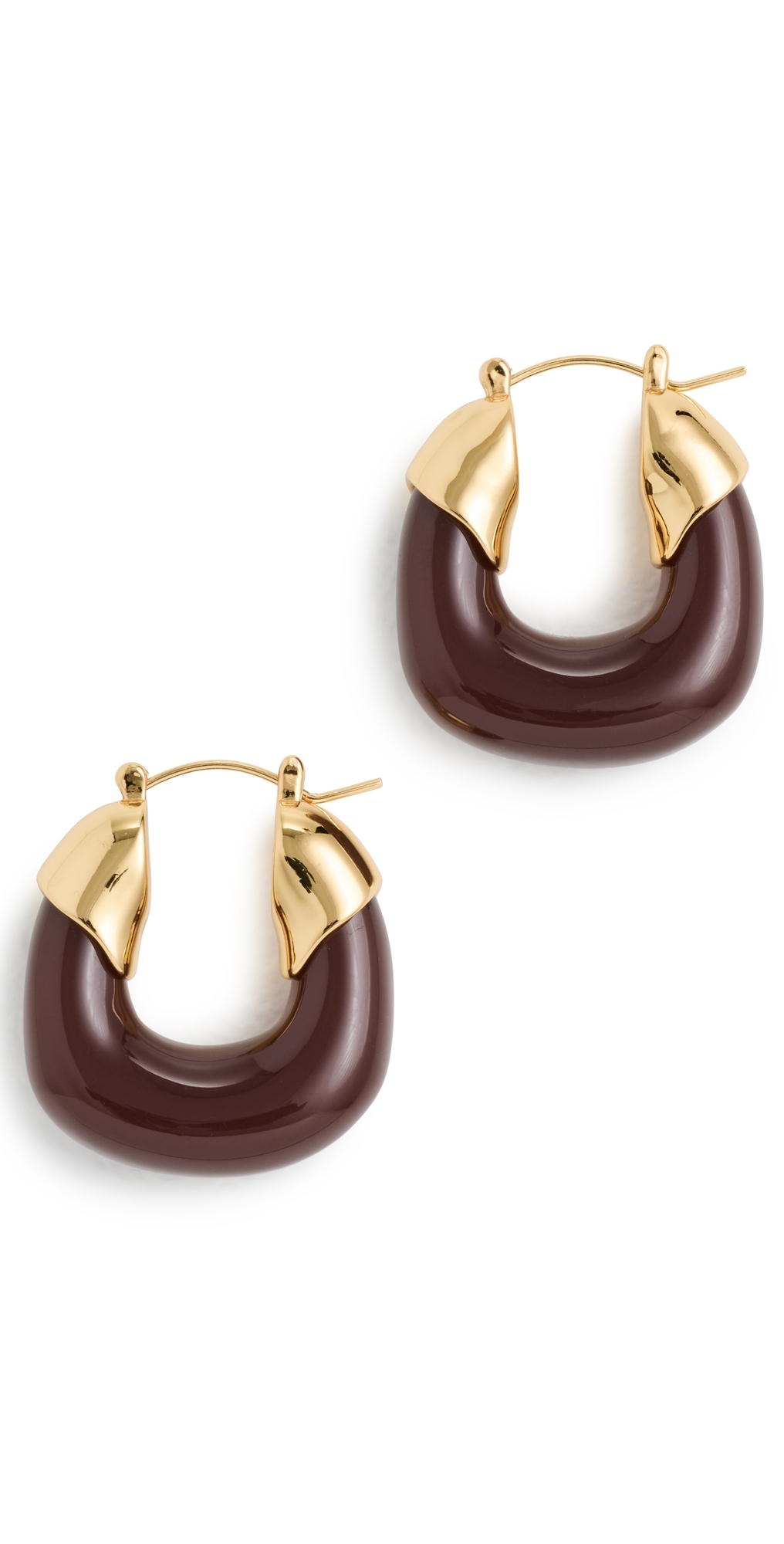 Resin ring details. Gold plated brass. Snap bar clasp. Imported, China. Measurements: Length: 1.25in / 3.0cm