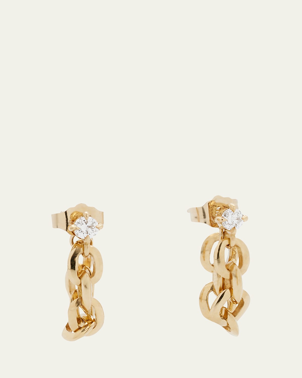Extra-Small Knife-Edge Chain Huggie Earrings with 3mm Diamonds