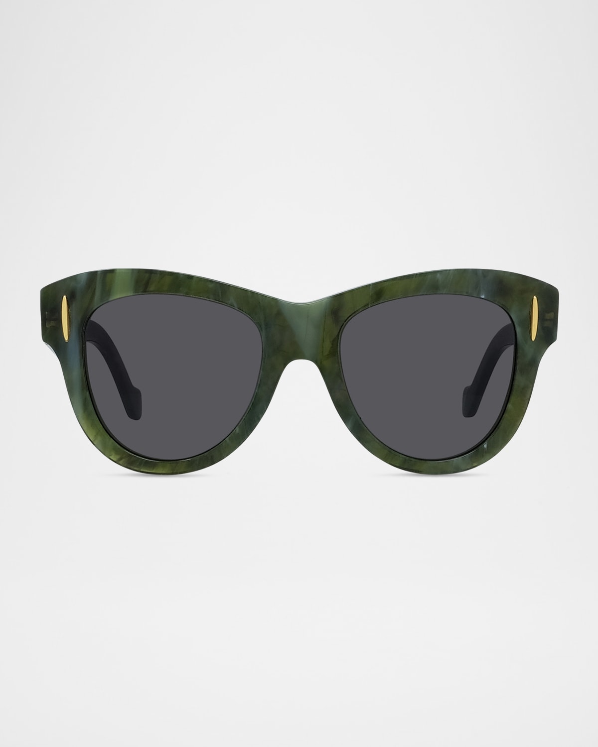 Loewe chic butterfly sunglasses crafted of rich acetate Eye/bridge/temple (in mm): 5120140 Monochromatic lenses Saddle nose bridge Anagram metal signature in relief on both temples Wide, tapered arms 100% UVA/UVB protection Acetate Hand wash Made in Italy