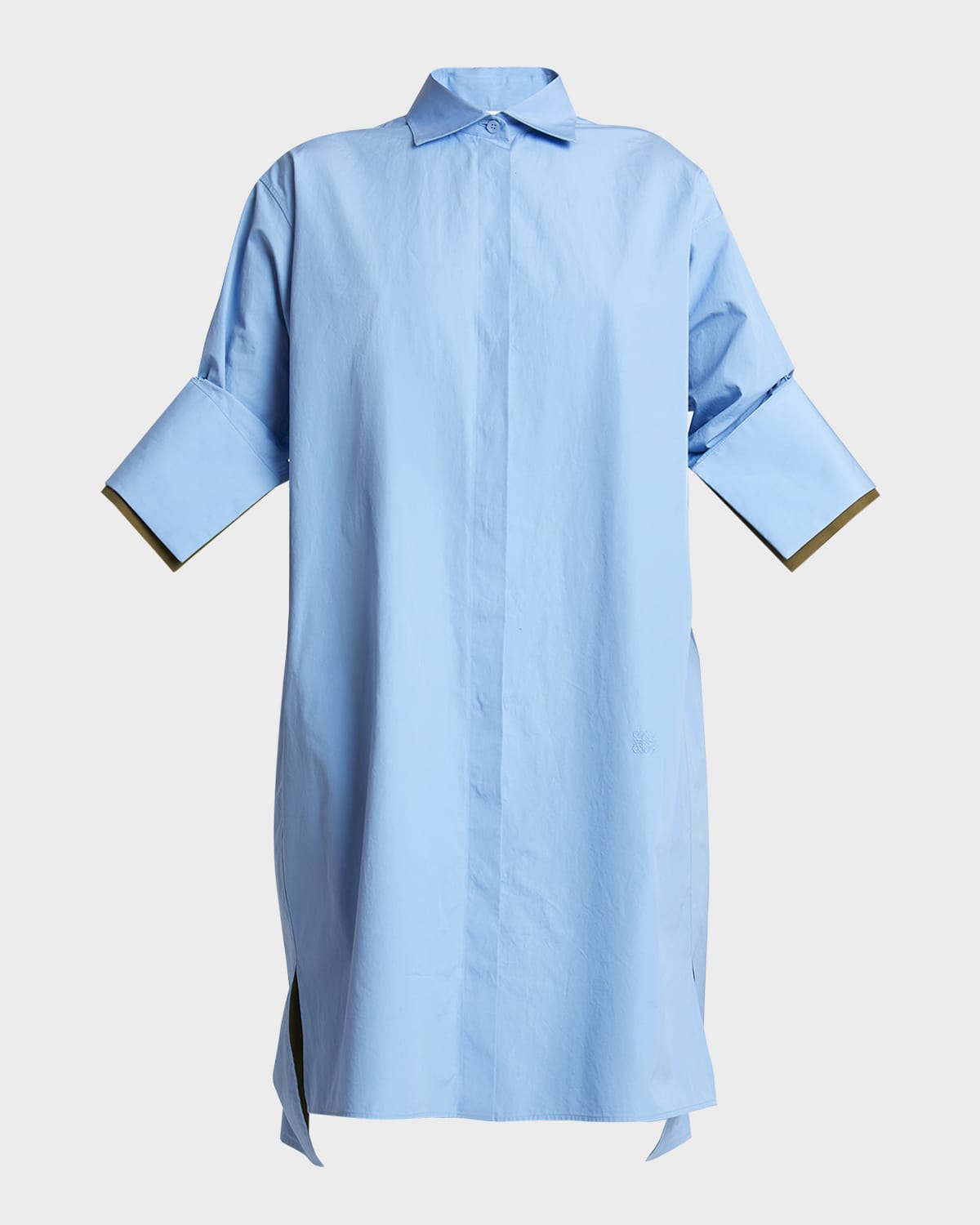Loewe buttonfront shirtdress features layered turnedup sleeves Spread collar Concealed button placket 3/4 sleeves Hem falls above the knee Shift silhouette Cotton/polyester/silk Dry clean Made in Italy