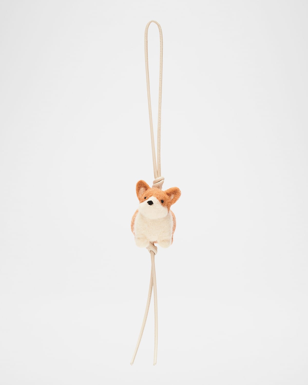 Loewe corgi charm in leather, merino wool felt, and PVC Approx. 12.1"W Made in Spain