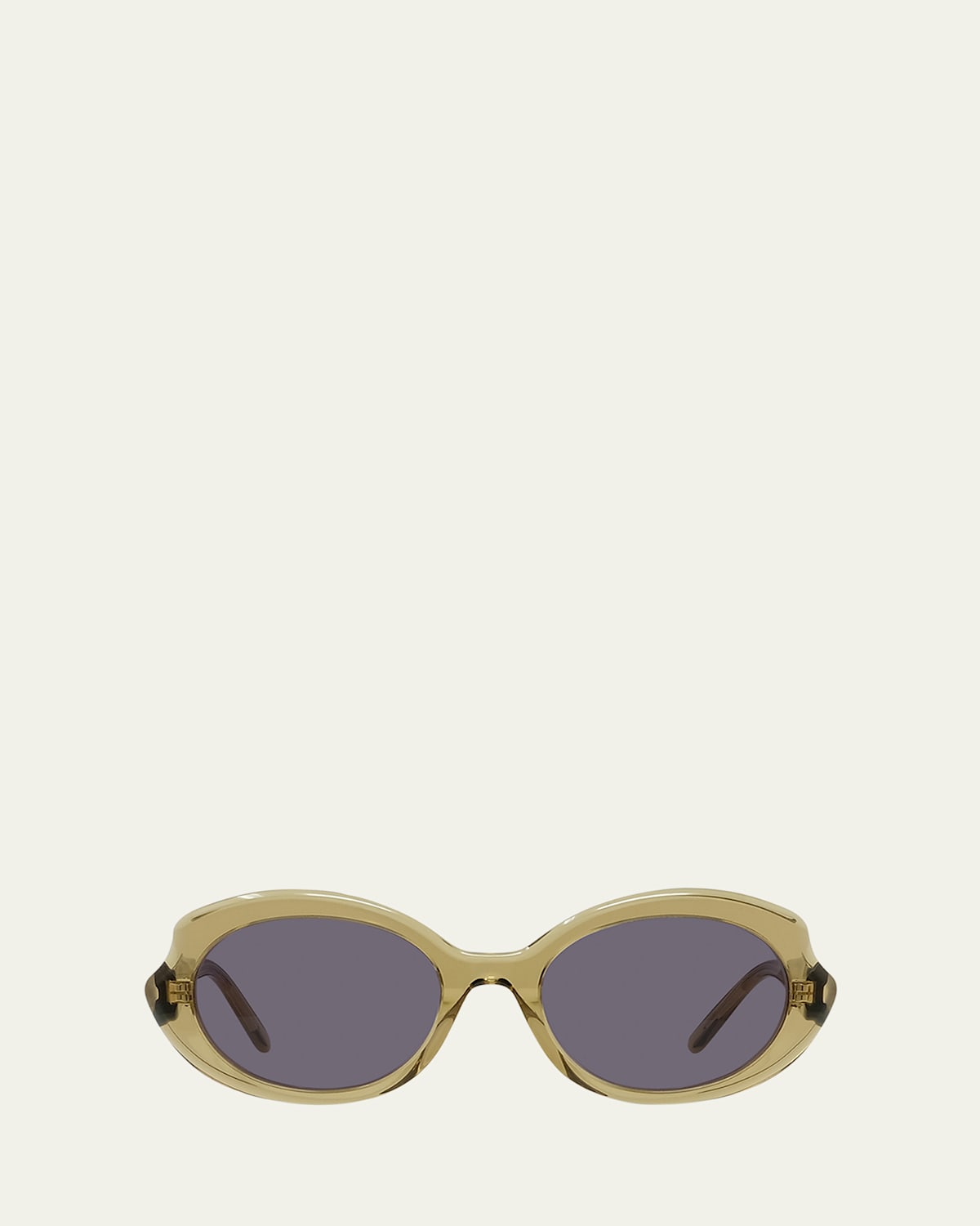 Loewe ovalshaped sunglasses crafted of translucent acetate for a modern, minimalist effect Eye/bridge/temple (in mm): 5420140 Monochromatic lenses Saddle nose bridge Goldtone branded lettering at temples Thin, tapered arms 100% UVA/UVB protection Acetate Hand wash Made in Italy