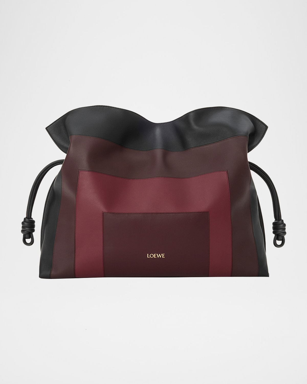 Soft and slouchy, this "Flamenco" clutch bag from the Loewe x Albers collection is crafted in nappa leather with intarsio squares inspired by Josef Albers's "Homage to the Square" series Designed in collaboration with the Josef amp; Anni Albers Foundation, this piece includes an internal tag with embossed logo lettering and Josef Albers signature Flat shoulder straps, 11" drop Can be worn as a clutch or shoulder bag Open top with magnetic closure Interior, one zip pocket Textile lining Approx. 13.6"H x 17.6"W x 8.5"D Made in Spain