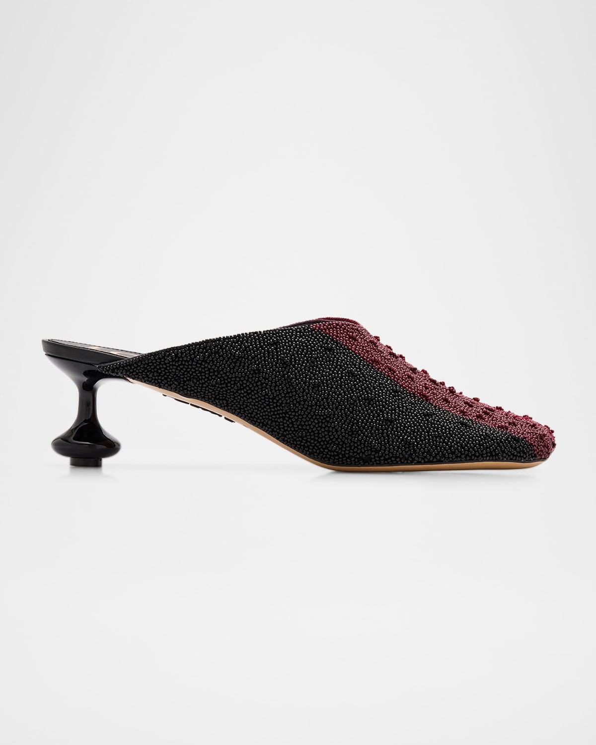 The "Toy" mules by Loewe are crafted of handbeaded canvas in a geometric pattern inspired by Josef Albers's "Homage to the Square" series From the LOEWE x Albers Collection 1.75 in / 45 mm lacquered kitten heel Petalshaped toe Slipon style Leather outsole Lining: Cotton/polyester Made in Italy