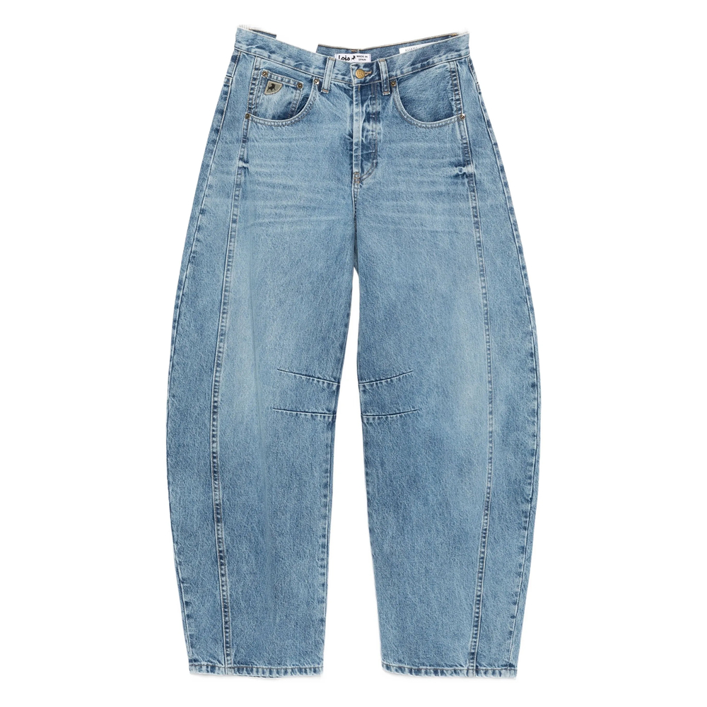 light blue front button and zip fastening classic five pockets belt loops wide-leg