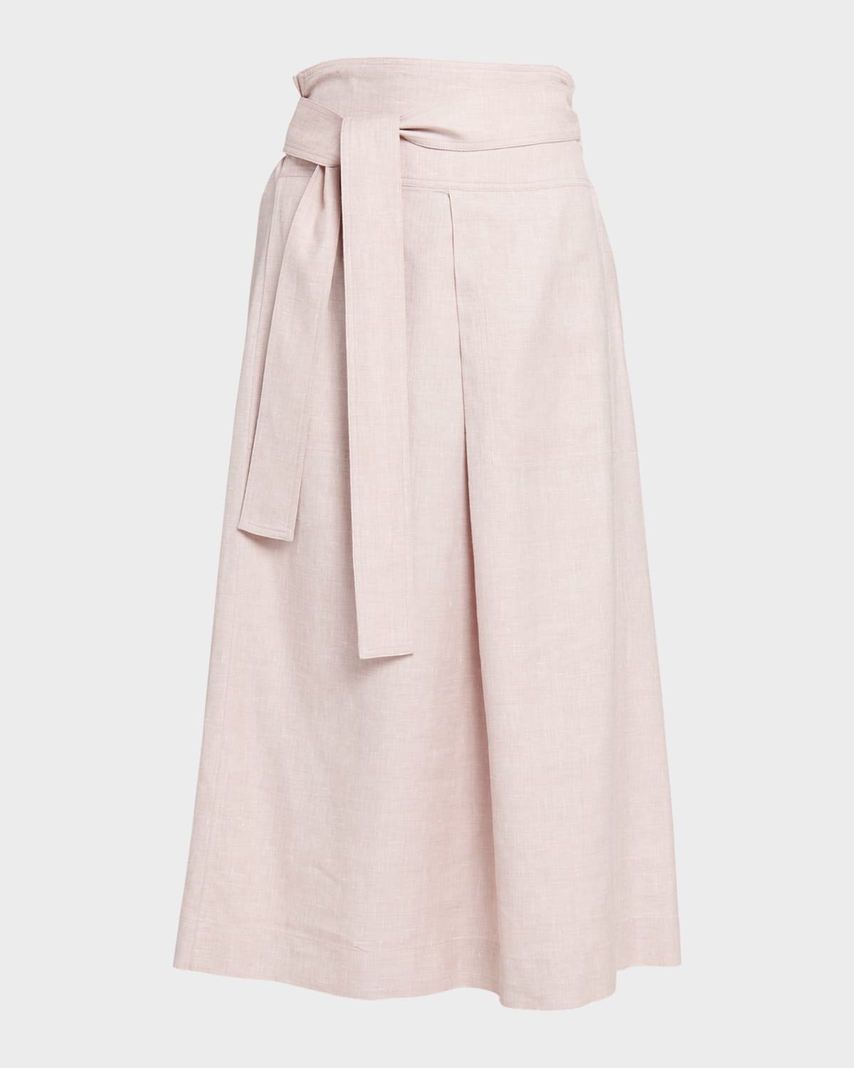 Ariel Spring Linen-Wool Belted Midi Skirt