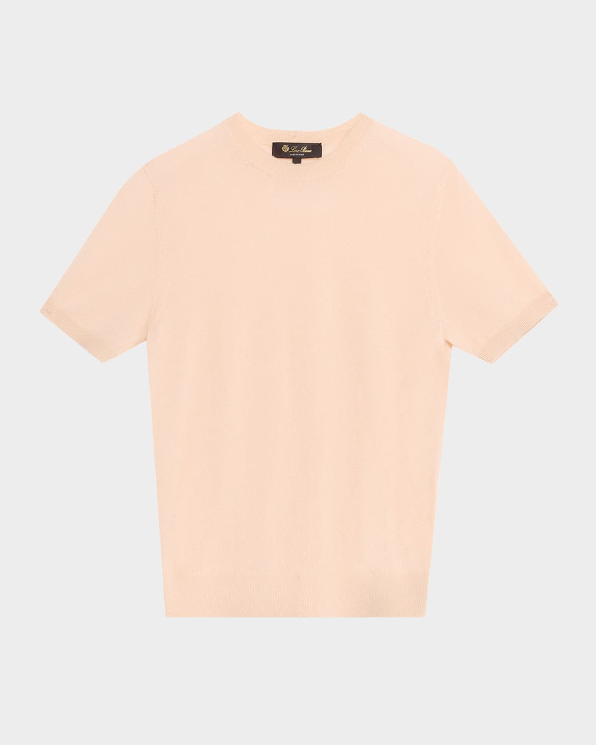 Knit from a lightweight blend of Mongolian cashmere and silk, the "Camino" sweater by Loro Piana is cloudsoft to the touch 12GG Crew neckline Short sleeves Relaxed fit Hip length Ribbed cuffs and hem Pullover style Cashmere/silk Made in Italy