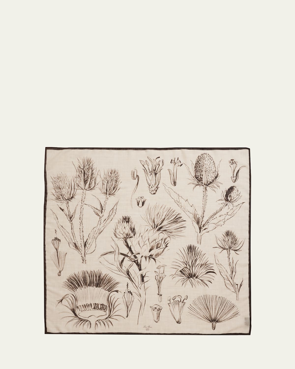 Loro Piana foulard featuring a sophisticated botanical print Approx. 35.43"Sq. Handrolled edges May be styled multiple ways Cashmere Dry clean Made in Italy