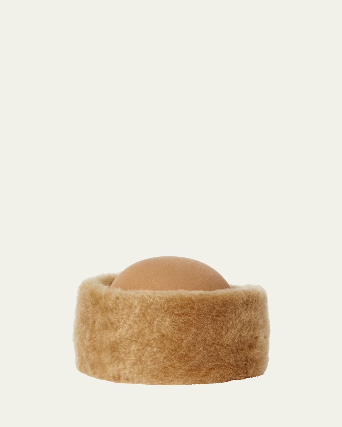 Loro Piana fur hat cashmere felt Round crown Sheared rabbit fur cuffed hem Made in Italy