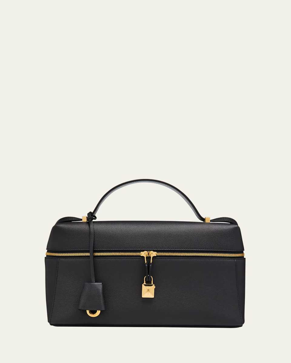 Loro Piana "Extra Pocket" shoulder bag in leather Top handle with keyring tag Removable, adjustable shoulder strap Can be worn as a top handle, shoulder, or crossbody bag Twoway zip top closure Interior, flap pouch Approx. 6.2"H x 10.6"W x 3.9"D Made in Italy