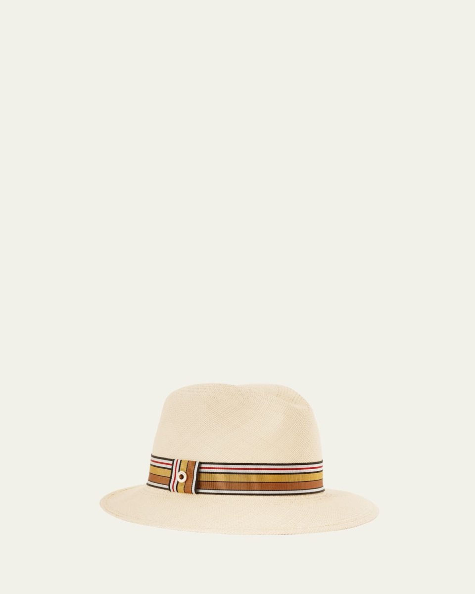 Ingrid Straw Panama Brisa Hat w/ Multi-Stripe Ban