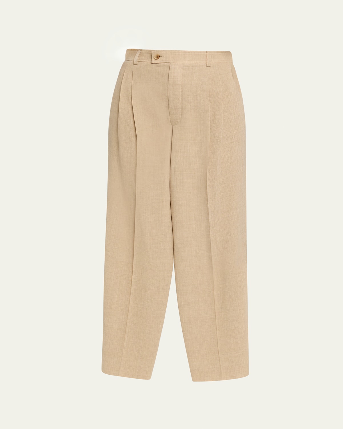 The "Joris" trousers by Loro Piana are crafted from pure virgin wool and expertly tailored with legelongating vertical pleats for a flattering fit From the 100th anniversary capsule collection High rise Slanted side pockets Full length Wide legs Button/zip fly; belt loops Virgin wool Lining: Silk Dry clean Made in Italy