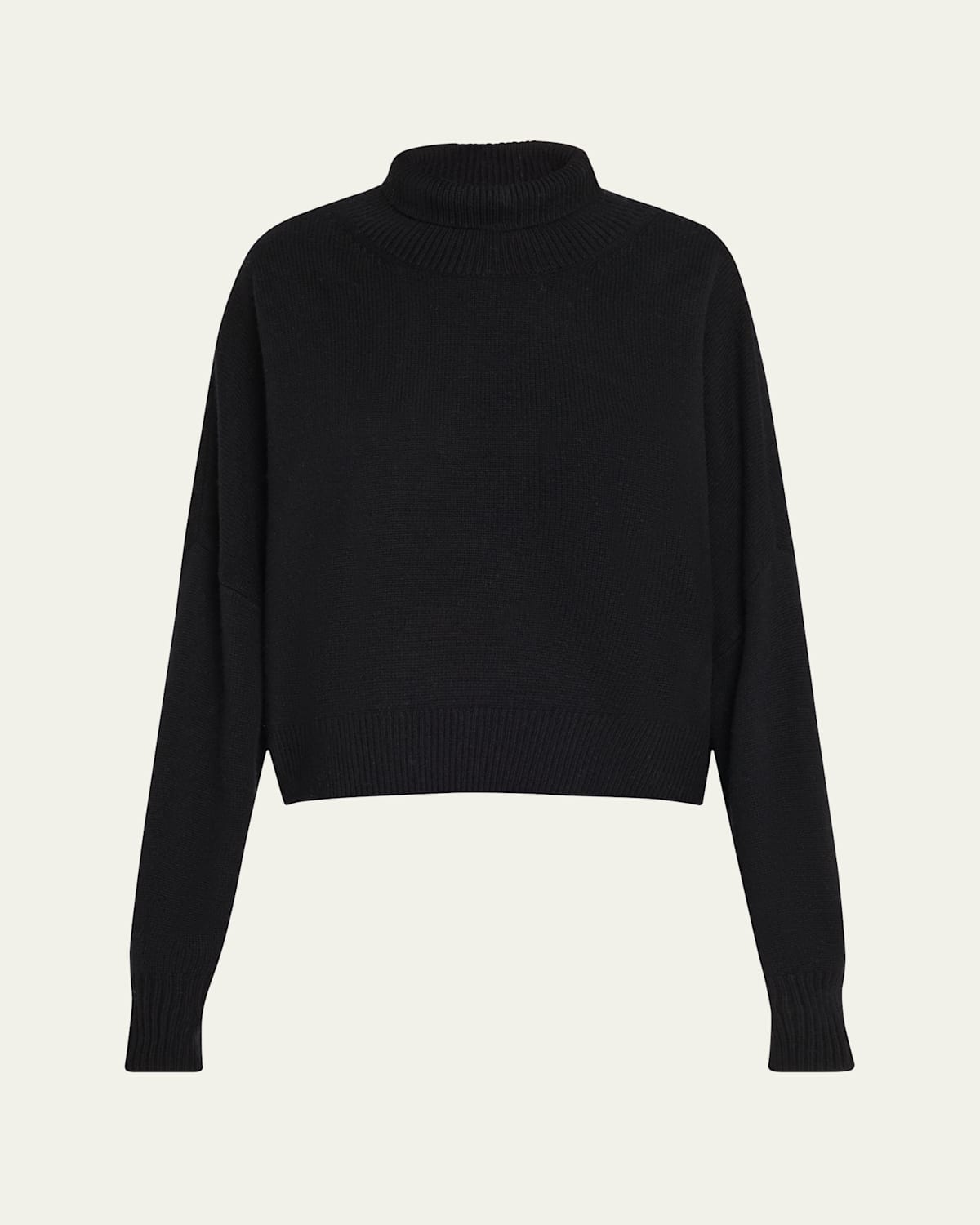 Loulou De Saison "Luke" sweater in a soft cashmere blend Turtleneck Long sleeves Drop shoulders Loose fit Ribbed cuffs and hem Pullover style Wool/cashmere Made in Italy