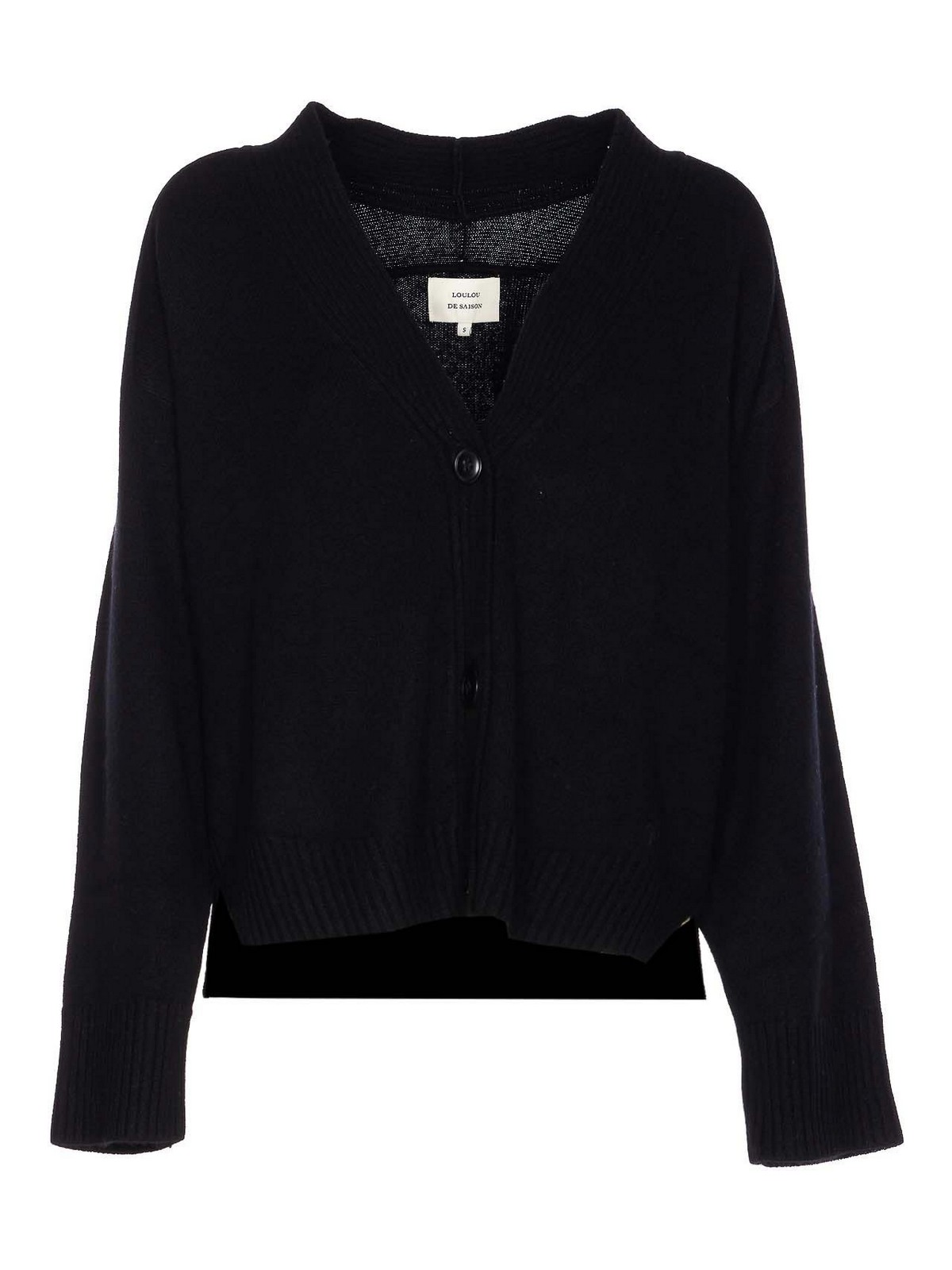 Cardigan Kaia noir Loulou de saison avec boutons, encolure en V et manches longues Nom de la couleur du créateur: noir