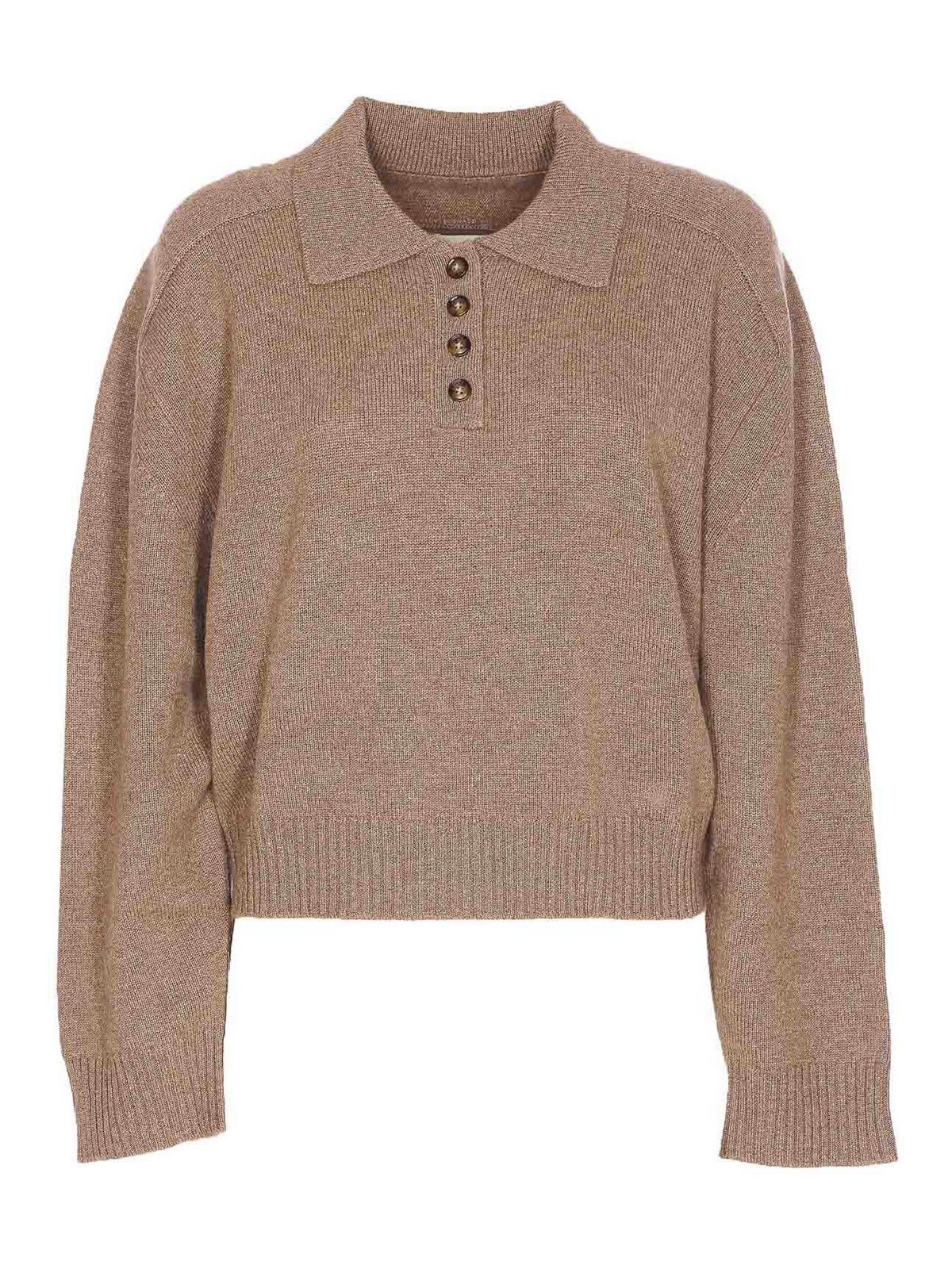 Pull Homere beige Loulou de saison à col régulier, manches longues et boutons