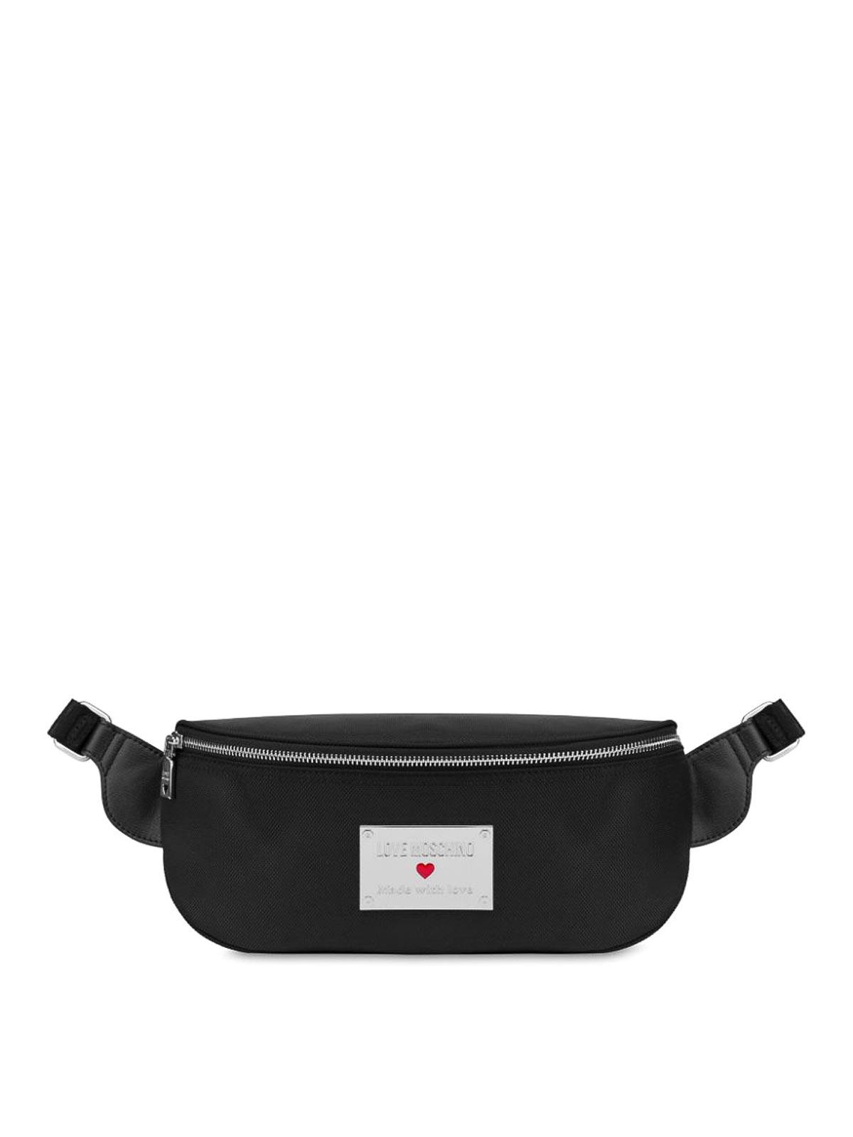 Fermeture éclair noire avec plaque logo ton sur ton, compartiment, bandoulière réglable, fermeture éclair arrière, poche