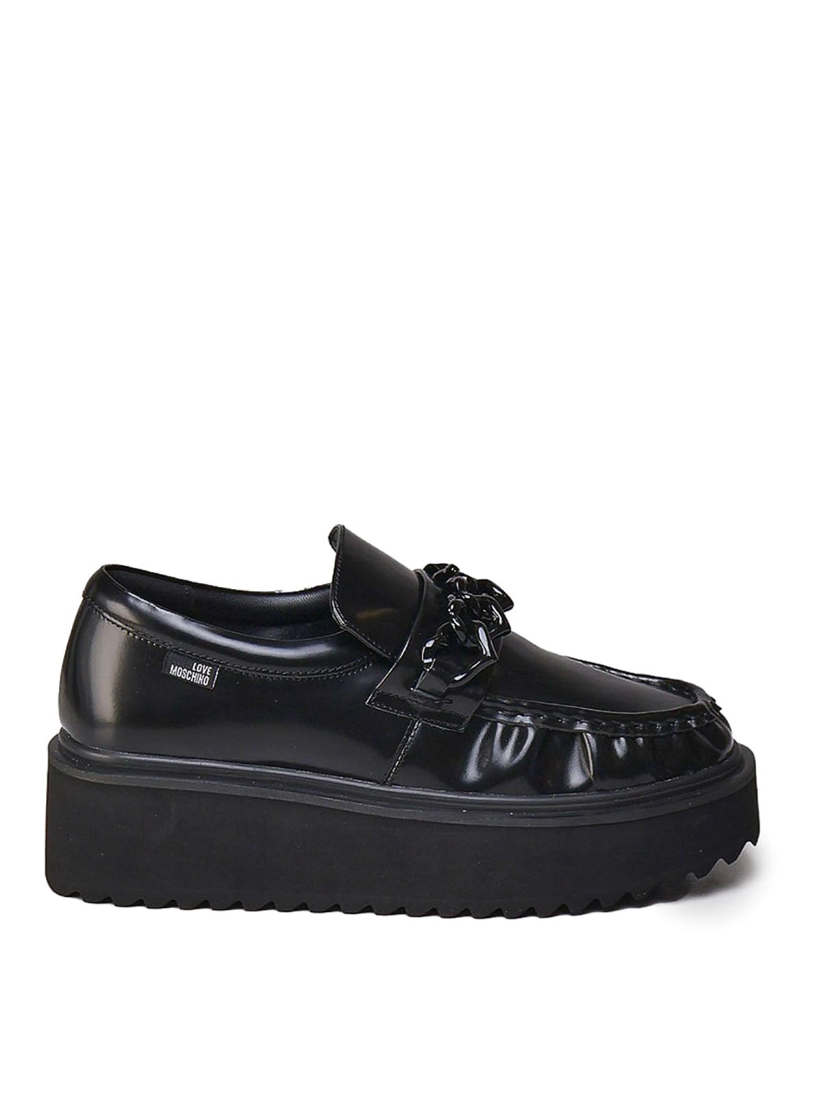 Mocassin brillant, frisé sur la pointe, couleur noire