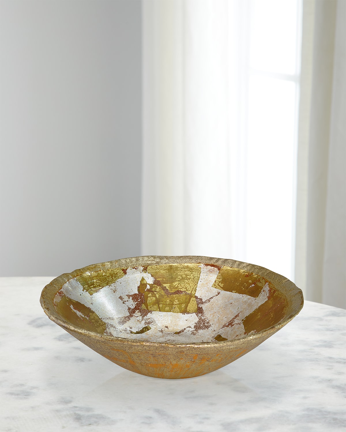Hand sculpted round shaped decorative bowl made of resin. Approx. 20"Dia. x 6.5"T. Imported.