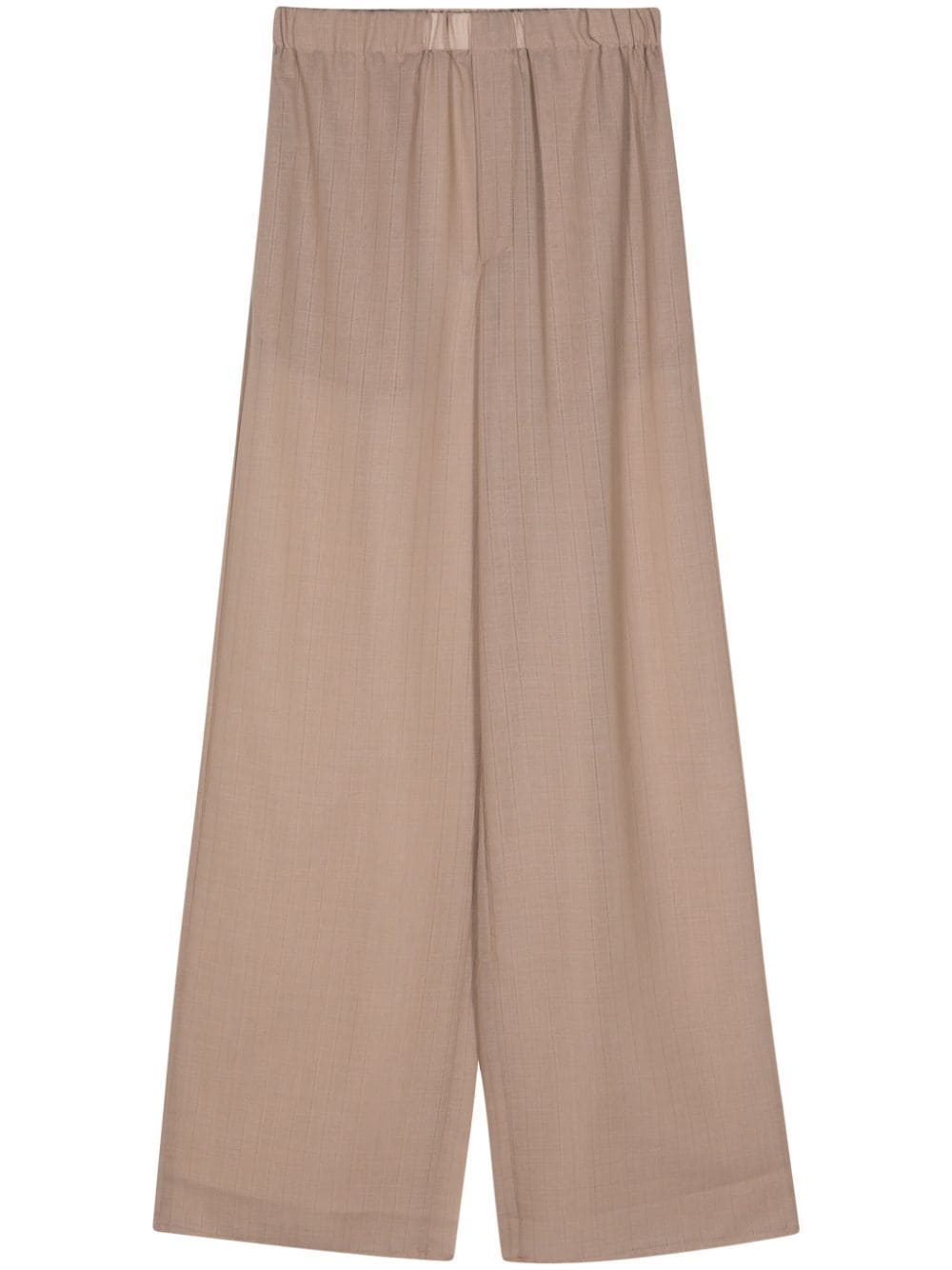 medium beige virgin wool blend semi-sheer construction vertical stripe pattern elasticated waistband two side inset pockets pull-on style When buying this unisex item, keep in mind that it is graded in standard men's sizing.