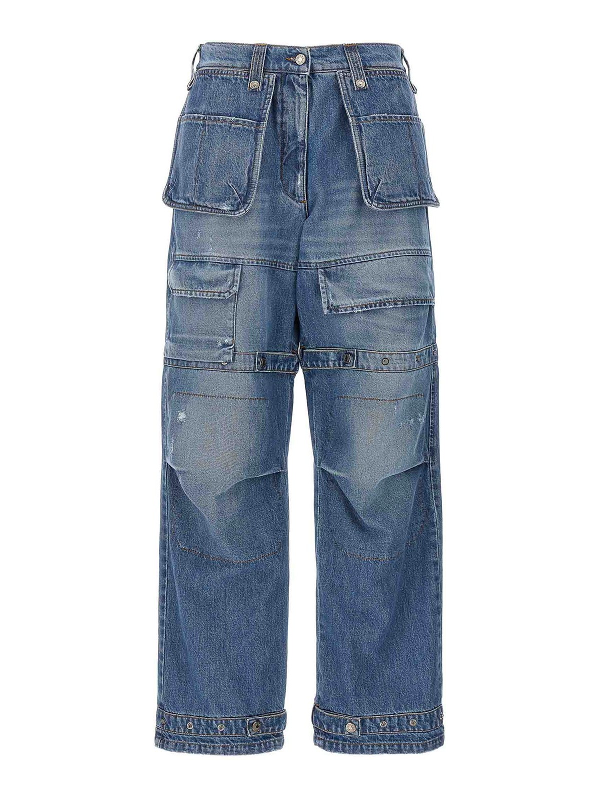 Jean cargo en jean à poches multiples, poches à rabat amovibles avec boutons-pression à la taille, fermeture éclair et bouton