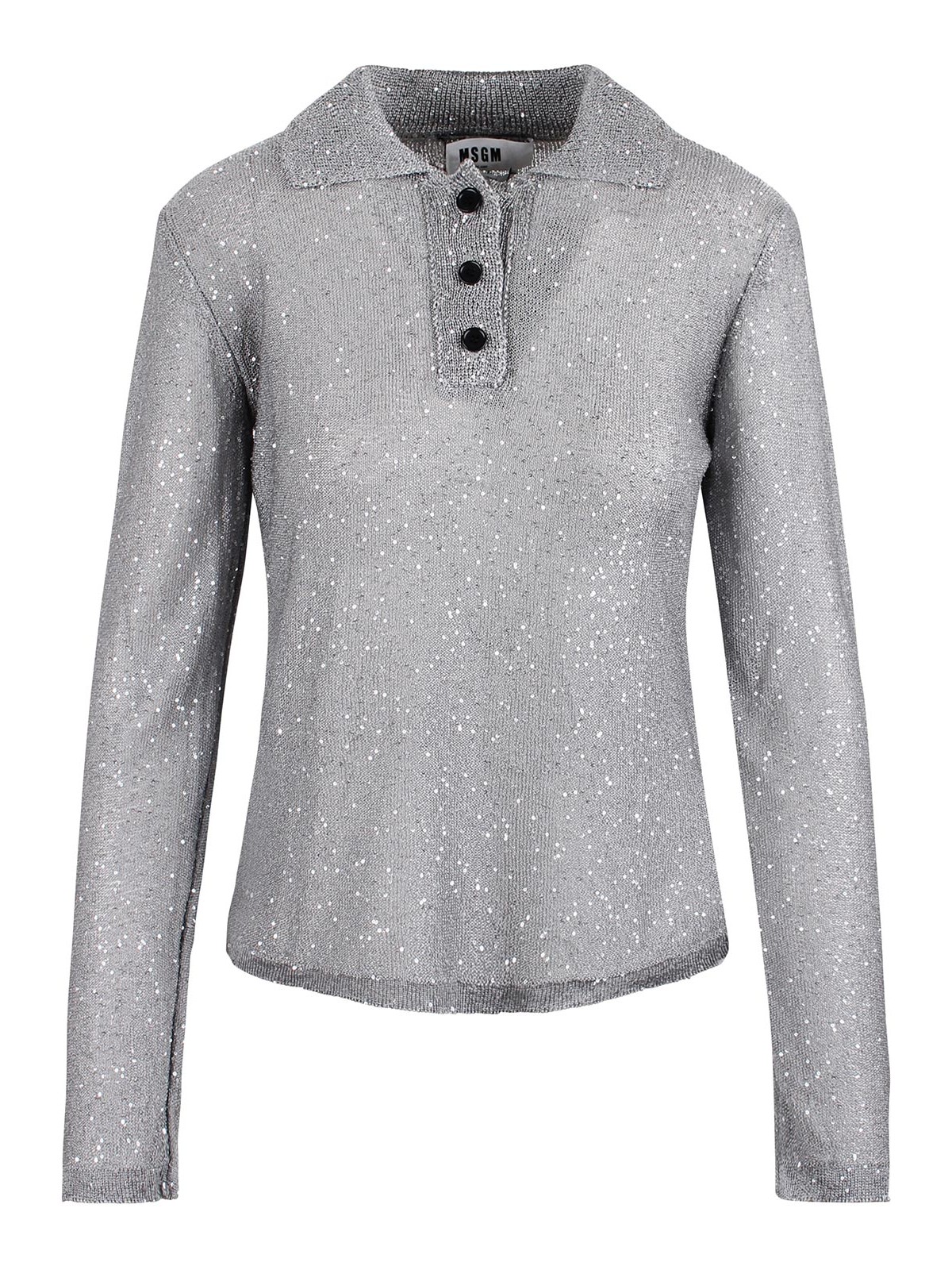 Polo Msgm en maille orné de paillettes, col polo boutonné sur le devant, manches longues, ourlet droit