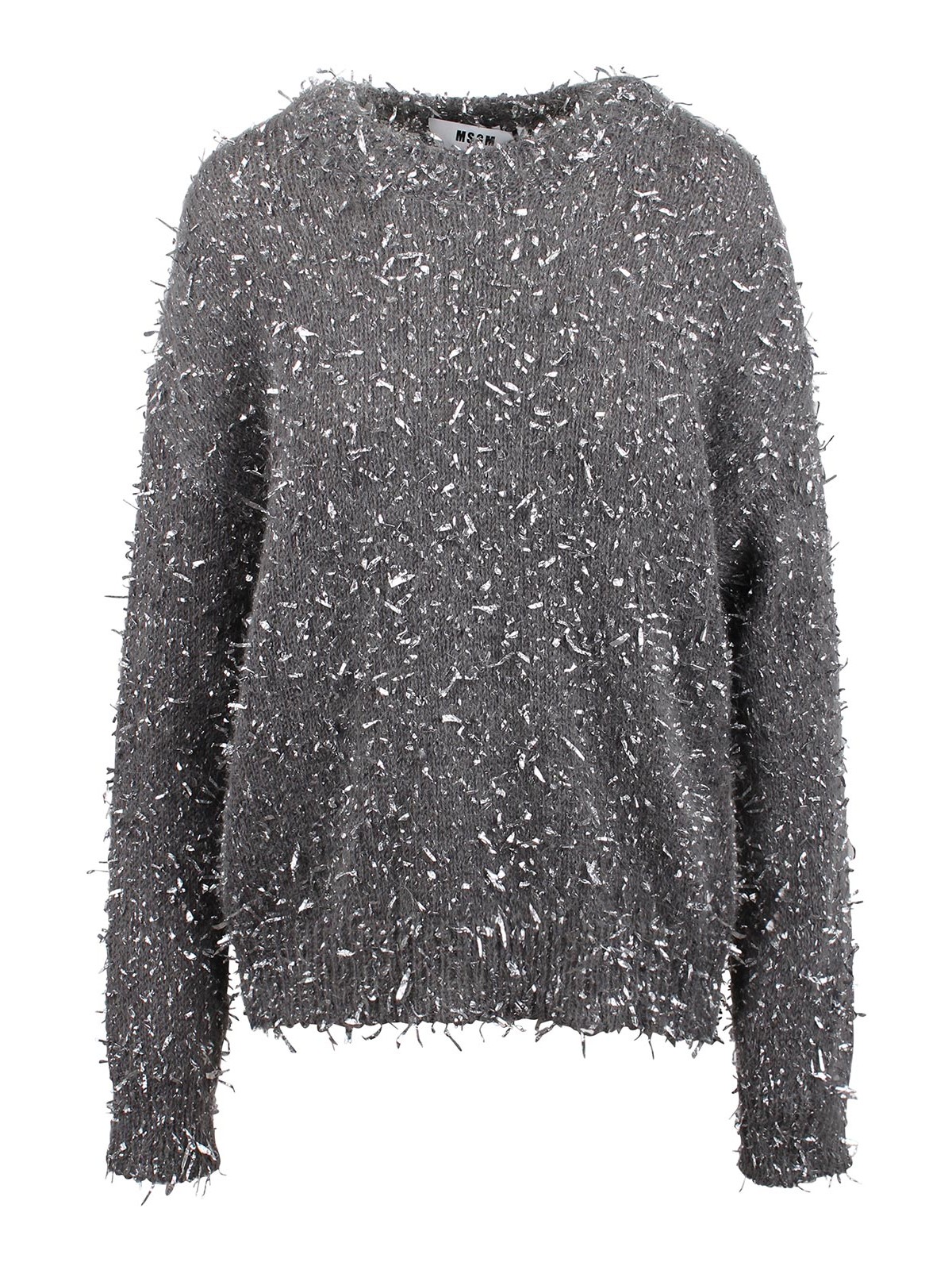 Pull à col rond à effet effiloché de la marque MSGM à franges et bords côtelés, col rond, épaules tombantes, manches longues, ourlet droit
