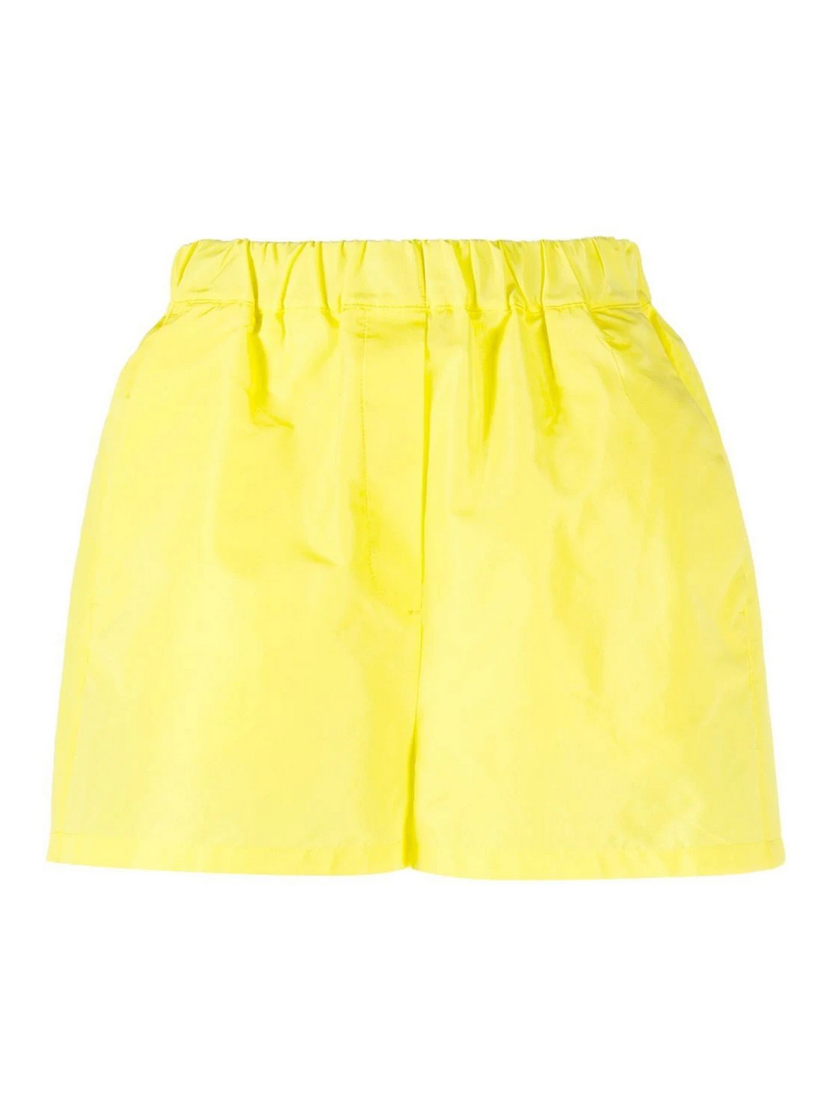 ceinture élastiquée jaune, deux poches latérales fendues, poche arrière passepoilée, longueur cuisse