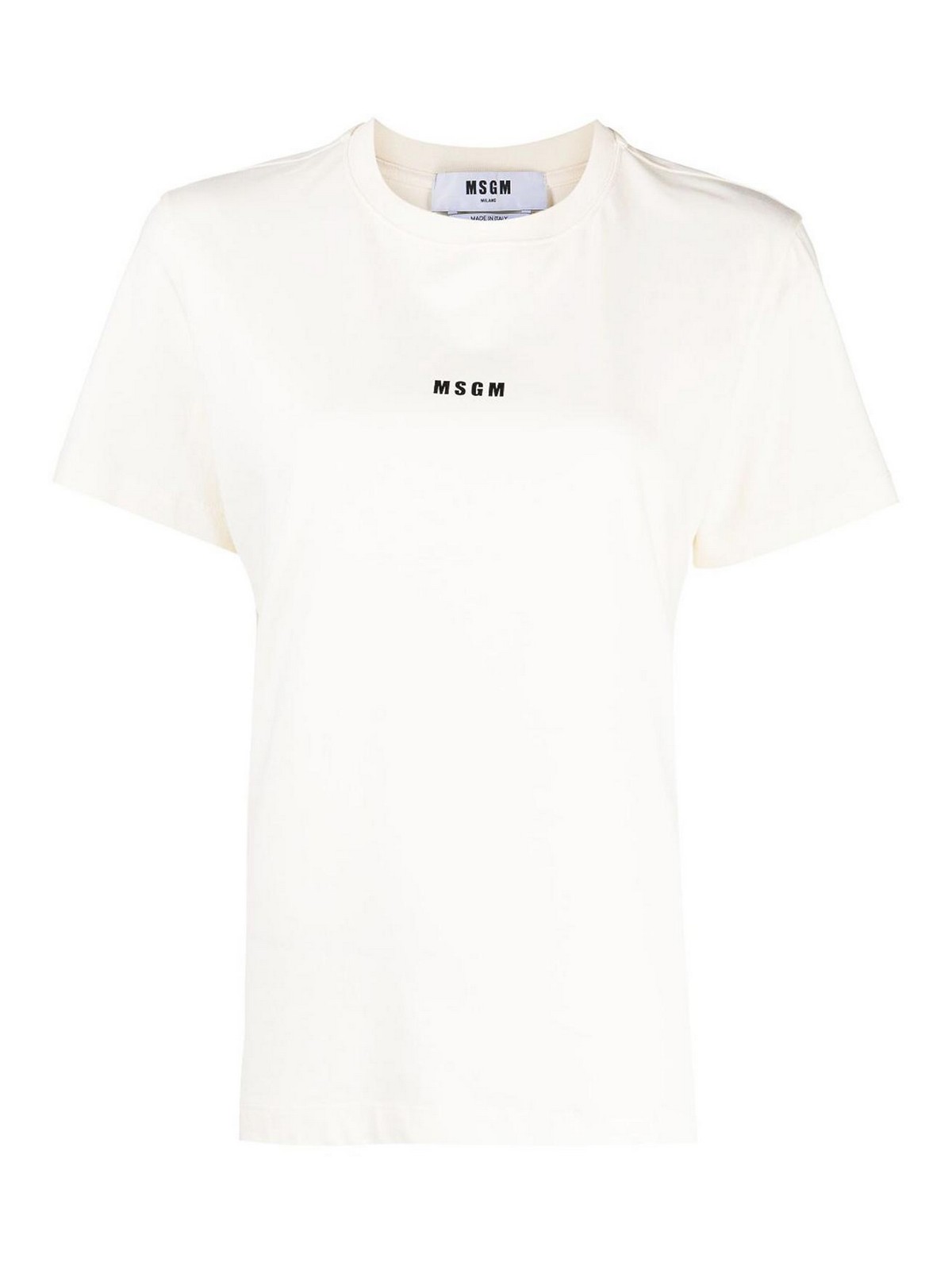 T-shirt blanc orné d'un logo imprimé noir emblématique, manches courtes, col rond et ourlet droit, msgm, logo imprimé blanc et noir, femmes
