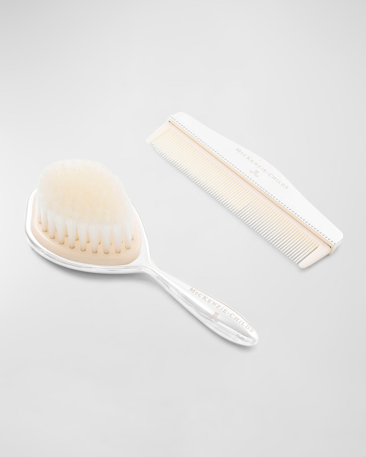 Brush set handcrafted of zinc alloy with silver plating and plastic bristles Pieces may vary due to the handmade nature of each product. Approx. 6.73"L x 5.6"W 2piece set Imported
