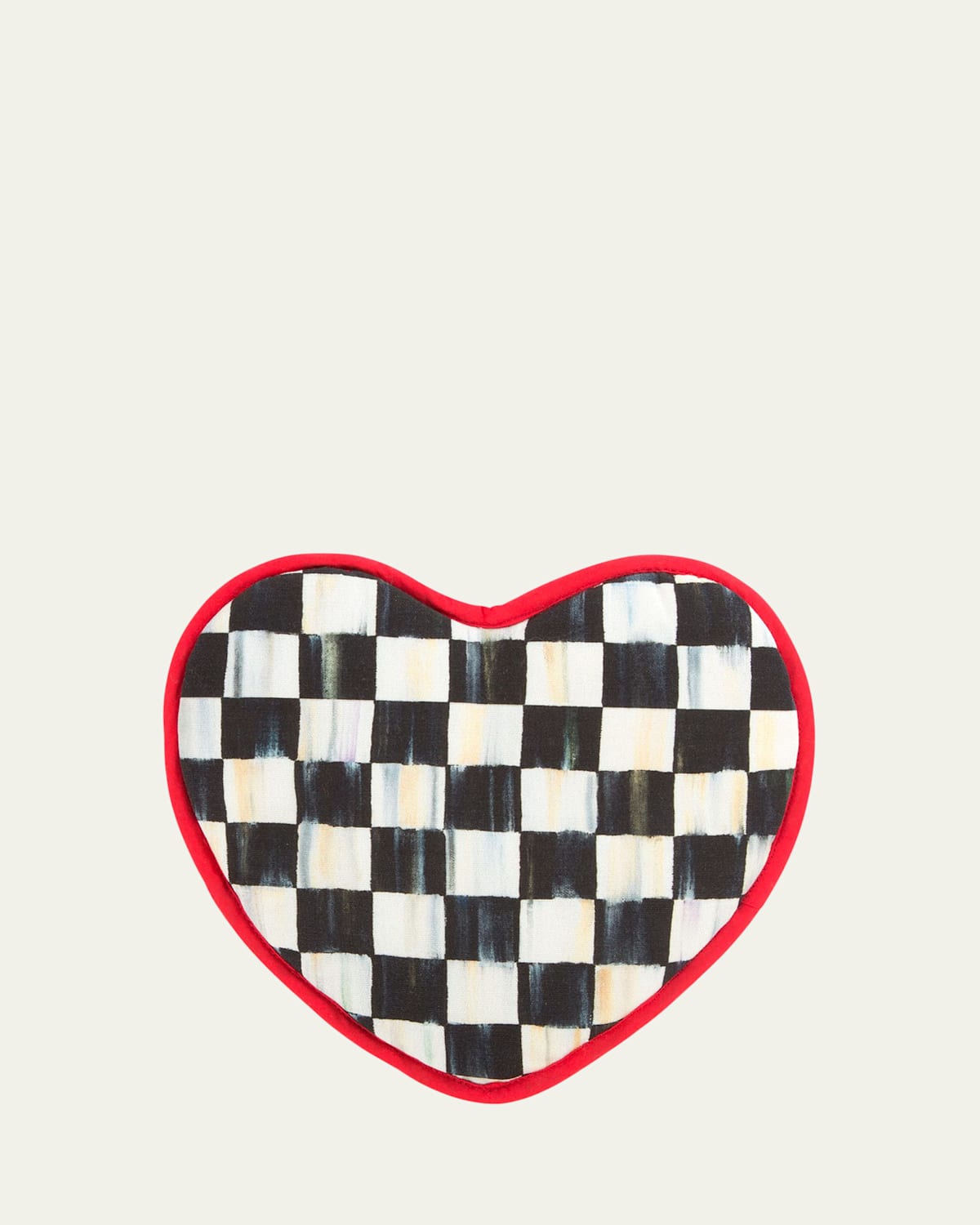 Heartshaped pot holder made of cotton. Pieces may vary due to the handmade nature of each product. 8"W x 9.25"D. Machine wash. Imported.