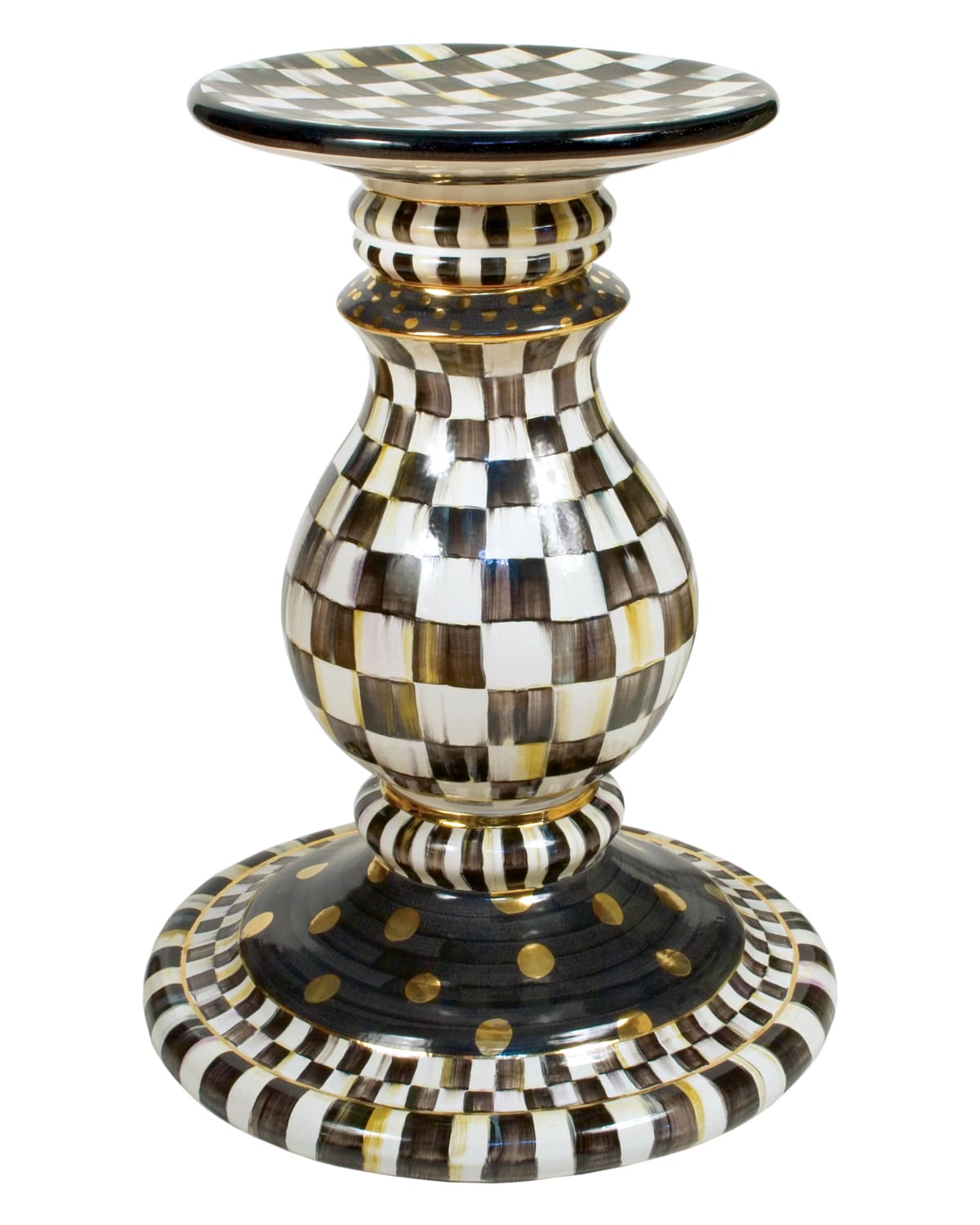Handcrafted table base. Handpainted ceramic. Handapplied goldleaf embellishments. 16.5"Dia. (top) x 22"Dia. (bottom) x 30"T. Because each item is made by hand, no two are identical. Made in the USA of imported materials.
