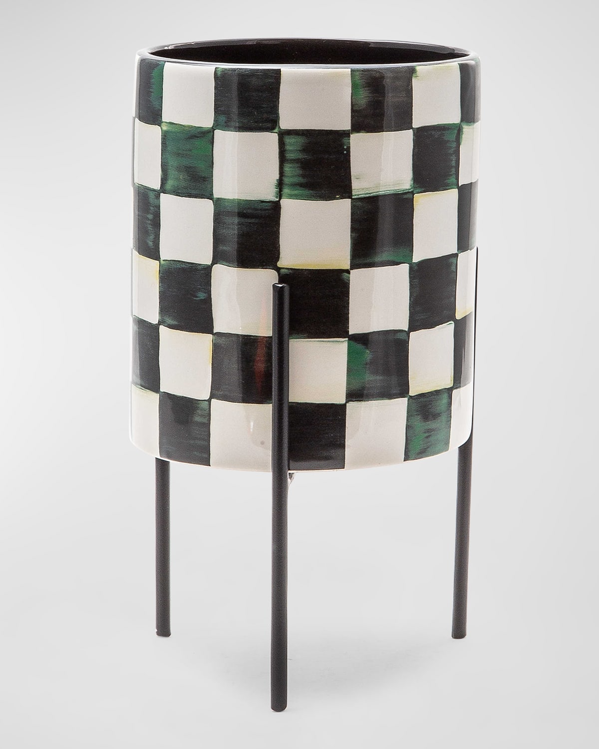 Planter pot is handmade of ceramic with a metal stand Pieces may vary due to the handmade nature of each product. Stand: 6.3" tall (pot sits 3.5" off the ground) Pot: 5"Dia x 6"T Overall, approx. 5"Dia x 6.3"T Item Weight (Lbs.): 1.0 Hand wash Imported
