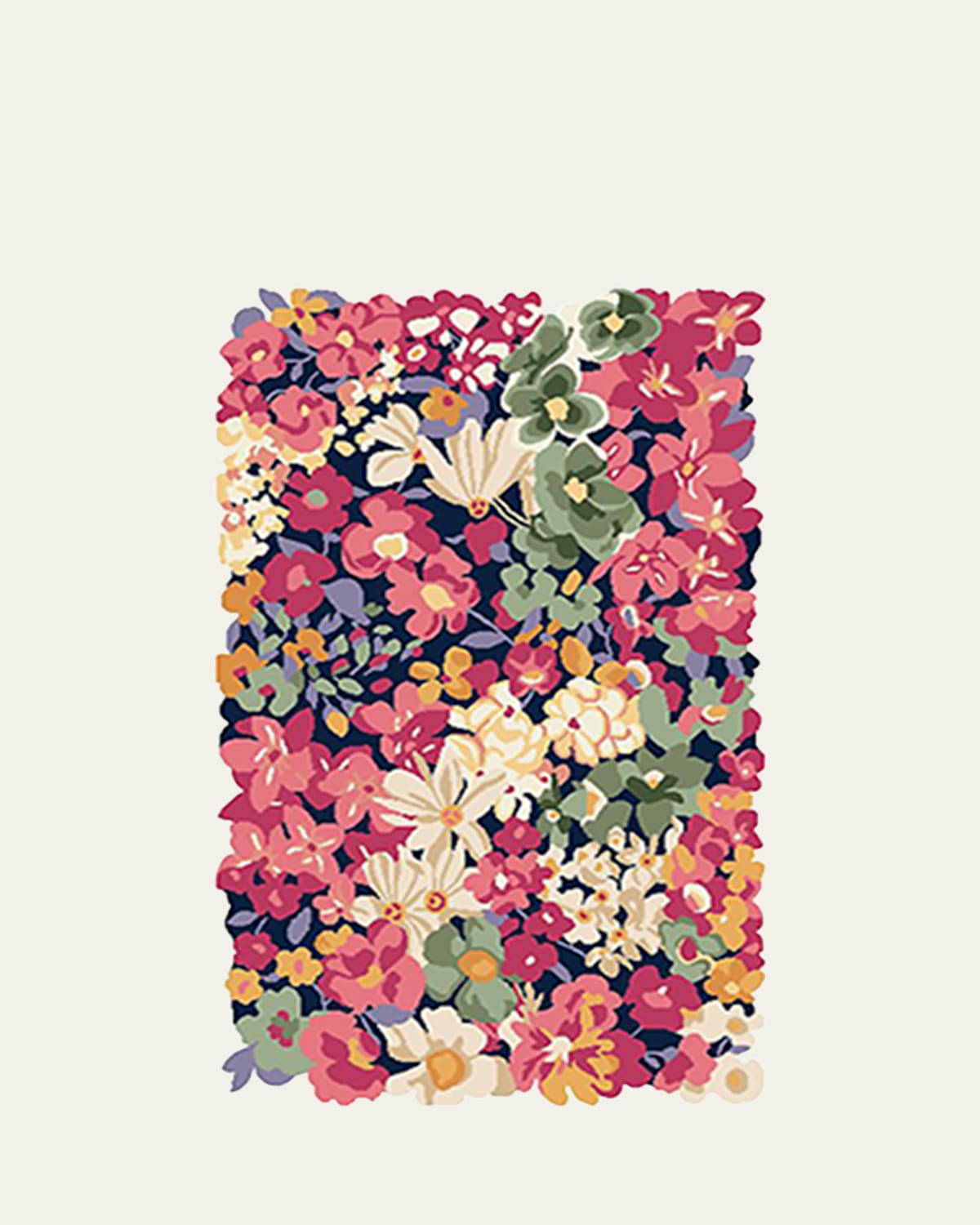 Put on a floor show with this woolblend rug. Done in rose tones that are always in full bloom, this rug is looped and sheared for a dimensional effect and trimmed with an irregular edge that highlights the floral shapes. Handcrafted of wool and viscose Rug height: 0.5" Vacuum periodically Size is approximate; we recommend use of a rug pad (not included) Imported