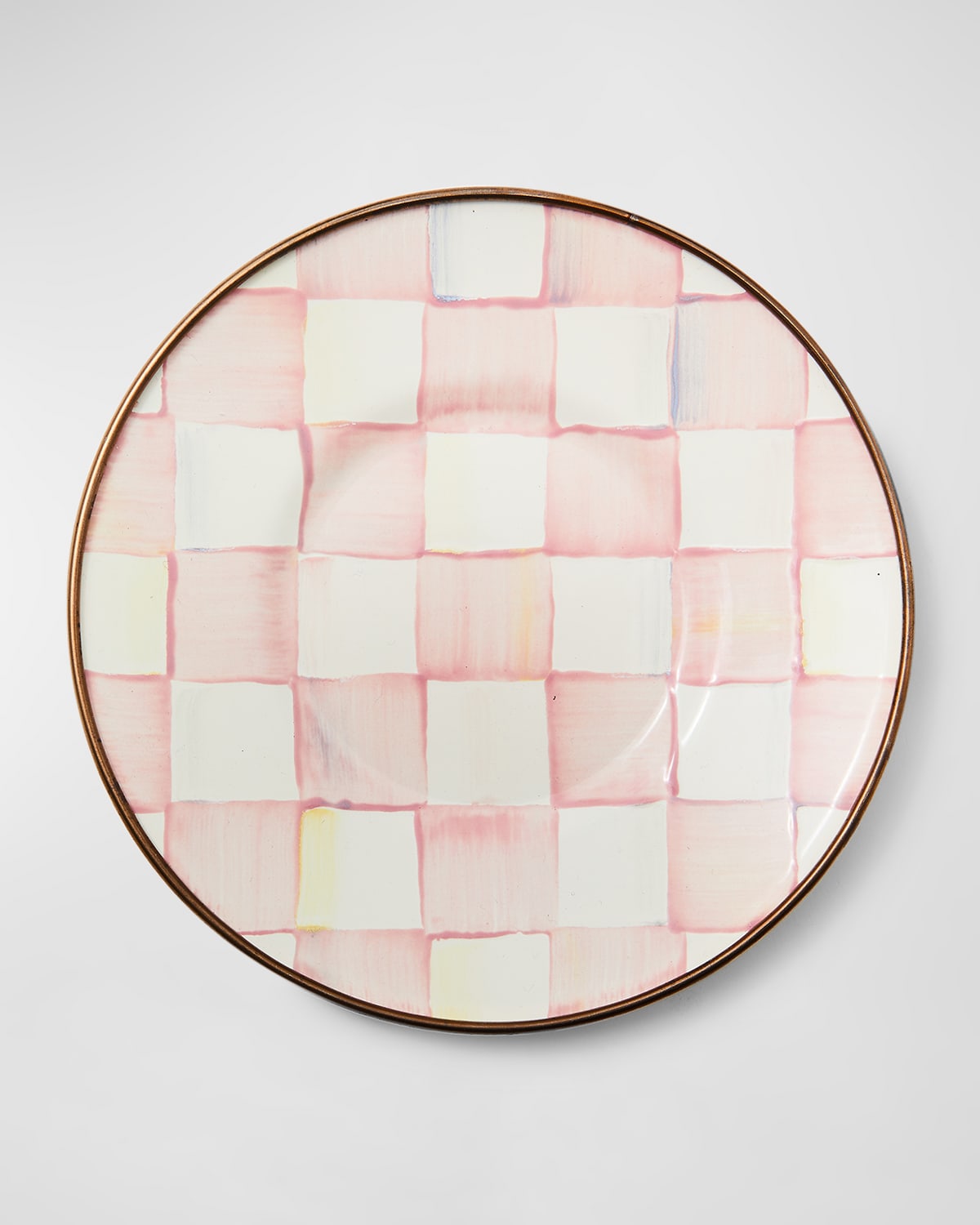 Start tea time with our Rosy Check Saucer and a tin of calming chamomile. Pair it with the matching Rosy Check Teacup. Handcrafted saucer Heavygauge steel underbody with bronzed stainless steel rim Hand painted with handpainted rosy checks 6"Dia Due to the nature of handcrafting, saucers may vary Dishwasher safe; hand washing recommended Imported