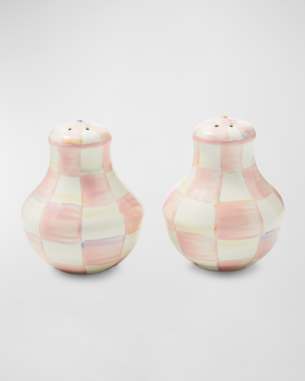 Spice up your table with Rosy Check Salt amp; Pepper Shakers, done in our rosy and white pattern that complements any kitchen decor. This stylish set features a subtle jeweltone palette woven by an artisan's brush through the glossy, handpainted checks. Handcrafted salt and pepper shakers Heavy gauge handglazed steel under body Handpainted rosy checks Silicone plugs Pieces may vary due to the handmade nature of each product. Dishwasher safe; for best results, handwash with mild soap and dry immediately. Approx. 2.5"Dia. x 3"T (each) Item Weight (Lbs.): 0.4 Imported